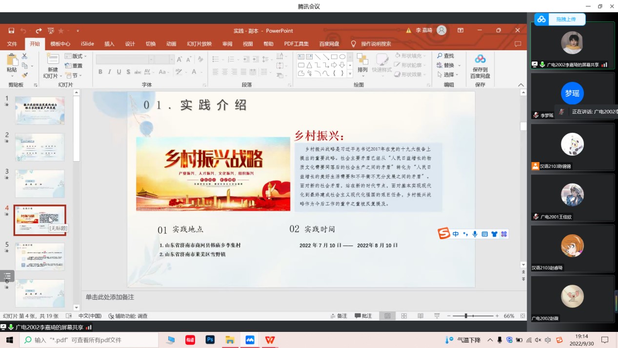 2022年暑期“三下乡”社会实践活动圆满结束,本次暑期“三下乡”社会实践活动涌现出一批批优秀的实践团队。WilliamHILL中国于2022年9月30日晚以腾讯会议的形式召开暑期社会实践优秀经验分享会。