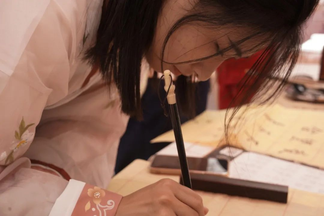 在汉服体验区域,提供不同风格的华服和精致装扮,参与者穿上华服,完美展现古风之美。参与者选择自己喜爱的汉服或古代服饰,由摄影人员记录下精彩瞬间。在飞花令、甲骨文、猜灯谜等活动中,参与者通过抽签对诗、你比划我猜、套圈等多种方式丰富和检验了自己的知识和技能。在书法区域设置书法展区,展示优秀的书法作品。参与者可以亲身体验中国书法的艺术魅力,感受墨香投笔的魔力。投壶和抽陀螺实景再现了中国古代的游戏场面,参与者通过参与活动,了解并切身感受了文化的魅力。此外,此次传统文化节还开设了手工体验,如画扇子、剪纸、做香囊等,让参与者亲身体验手工制作。制作完成后,参与者可以选择将其带走或者留至摊位展示。