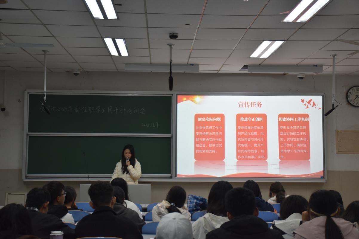 本次会议围绕“思想引领-组织建设-宣传工作-创新创业-社会实践-志愿服务–校园文化”七大主题展开,旨在提升2025级新任职学生团干部的综合素养与履职能力,为学院共青团工作高质量发展贡献蓬勃力量。