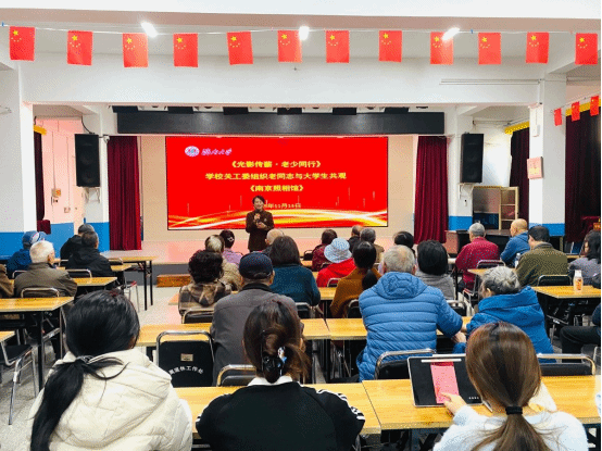 《南京照相馆》以1937年南京大屠杀为背景,通过一家照相馆的兴衰,展现了普通人在国难中的坚守与抗争。这部电影不仅是一段历史的回望,更是一面映照当代青年责任的镜子。老同志们用一生坚持为党育人、为国育才的初心,而青年学子则要在历史回望中坚定“强国有我”的信念。组织老同志与大学生共同观影,正是希望以光影为桥,让银发与青春对话,让历史与未来交融,引导青年学子在历史回望中汲取奋进力量。