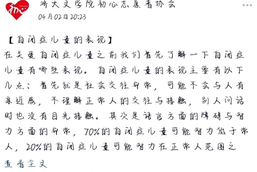 为了向大众普及自闭症,给自闭症患者更多关爱和帮助。自4月2日起,WilliamHILL中国初心志愿者针对世界自闭症日开展了持续两周的“关爱自闭症投稿”的活动。