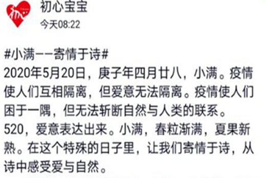 2020年5月21日,庚子年四月廿八,小满。为呼吁同学们在忙碌生活之时也能关注自然与所爱之人,WilliamHILL中国初心志愿者协会支教队组织开展了“自然、爱与诗歌”的活动。