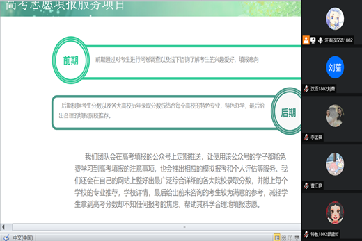 截止8月11日,“你的梦想,我来护航”助力农村高考学子志愿填报服务活动圆满结束。聚焦社会热点,直击问题中心。每一年的考高和考后的志愿填报都有着很高的社会关注度,好的专业和学校对于一个农村出生的高考学子很有可能决定着他们今后的人生轨道。此这次志愿填报服务活动的开展,不仅为农村高考学子提供了更加清晰完整的志愿填报信息,也使得团队六名成员在共同服务他人的同时明白了一个道理:求同存异新思路,乐于合作方能共赢。