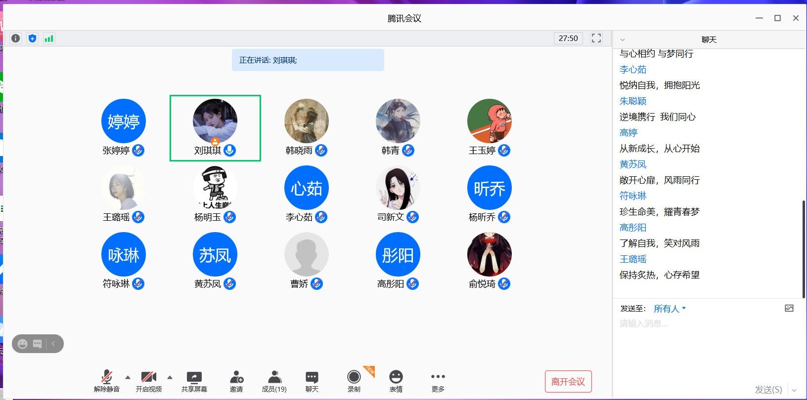 这次例会为即将举行的线上活动进行了介绍和安排,届时将邀请到大二心灵使者为新生们介绍生活和学习上的经验,为他们存在的困扰答疑解惑。会议初,部长刘琪琪首先对心理部的工作进行了详细的介绍,并分享了自己在工作上的一些心得,并对线上活动需要进行的工作,如写策划书、做活动流程PPT、进行问卷调查等进行了详细的安排。然后,全体成员对该活动进行了积极讨论并提出了修改意见。会议最后,部长刘琪琪表达了对新一届部门成员的期望,希望大家能在部门工作中得到锻炼与提升。