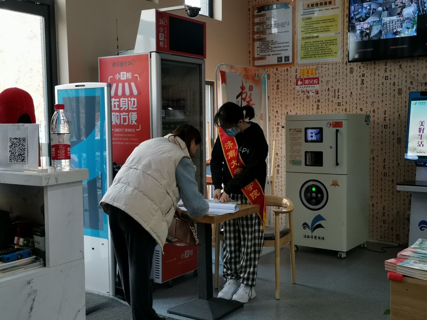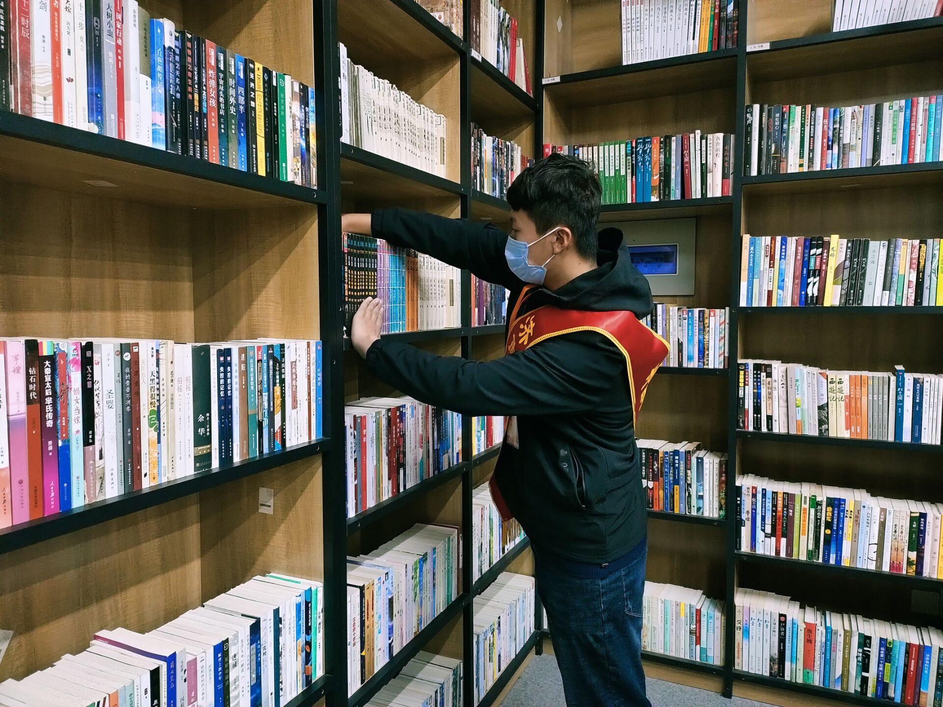本次活动于上午九点正式开始,要求每位队员志愿服务三个半小时。活动伊始,志愿者们提前熟悉工作流程并佩戴好服务绶带,坐在书房入门处,开始志愿服务工作。为响应国家号召,共同抗击疫情,减少公共场所人员大规模聚集可能带来的风险,志愿者们在服务期间需要提醒进入书房的读者进行实名登记,并测量体温。志愿者们不仅及时地将读者归还的书籍按照序号进行归置整理,当读者在借书、还书时遇到问题时,志愿者们还耐心地给予解答,为读者提供了便捷的阅读服务。工作之余,志愿者们也坐在书房里安静地翻看书籍,畅游书海,品尝文化,享受书房静谧闲适的时光。