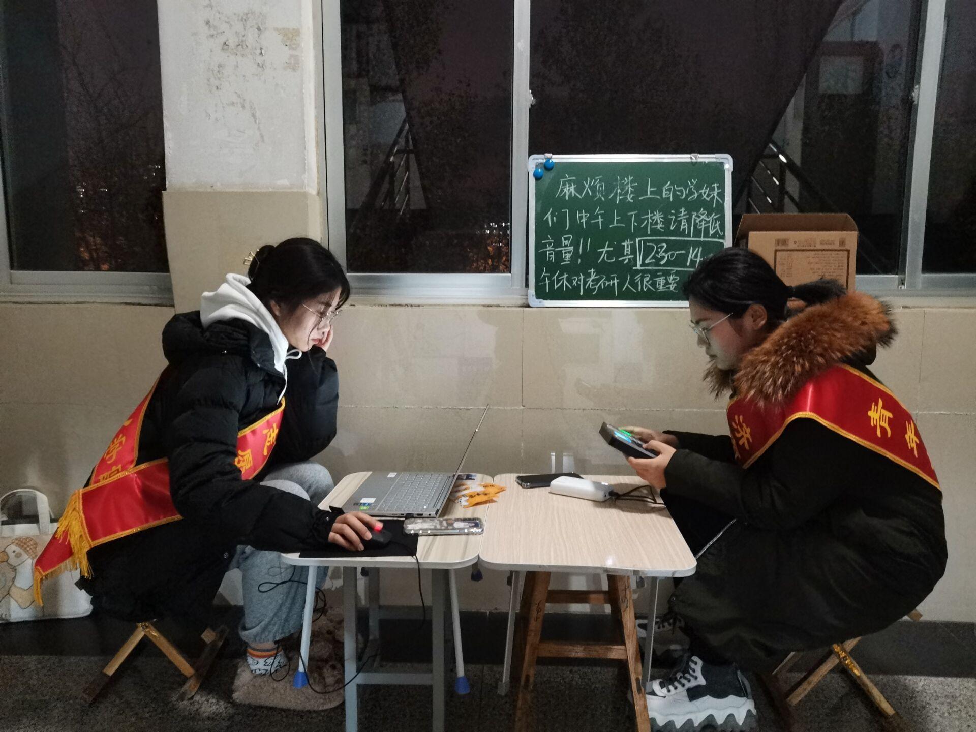 活动开展前,志愿者们跟从宿管部工作人员学习了指纹录入机器的使用,根据工作需要分成了两人一组并明确了彼此的分工:一人收取校园卡并核对信息,一人登记信息,并提前准备好了活动所需的笔记本、充电宝等工具。