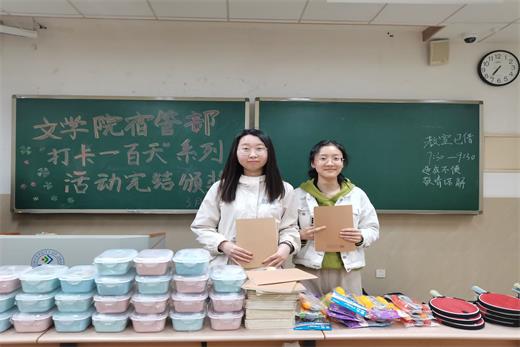 本次“线上打卡100天”习惯养成活动分为“光盘行动”“体育活动”以及“读书计划”三个版块。在本次活动中,同学们选择自己感兴趣的活动内容,积极参与,通过微信小程序“小打卡”进行活动的每日打卡。打卡内容十分广泛,包括读书摘抄、运动技巧分享以及光盘行动晒照等不同方式,涵盖学习、运动、日常生活习惯等多个方面。打卡一百天期满,宿管部相关负责人如期对本次活动按时打卡并且表现优异的同学颁发了餐具、笔记本、运动器材等奖品,并对本次工作进行了复盘。