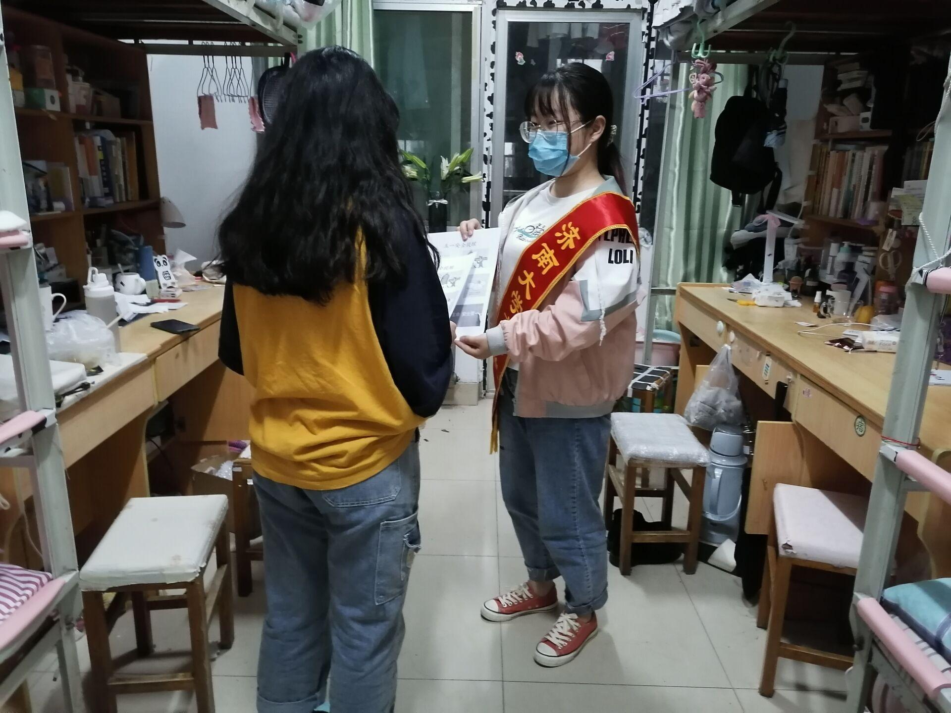 活动进行当天,志愿者们走进学生宿舍,面对面地与同学们交流五一假期安全知识,分发“五一假期安全知识”宣传单。志愿者们持续保持着高度的热情,积极宣讲“五月假期”相关安全知识并与同学们展开互动,解答同学们假期安全的相关知识,提高了同学们进一步了解假期安全出行的积极性。 最后,在全体志愿者的努力下,本次活动顺利结束,志愿者们对本次活动的出彩和不足之处进行了认真的分析总结,对下一次活动的开展提出新的期望。