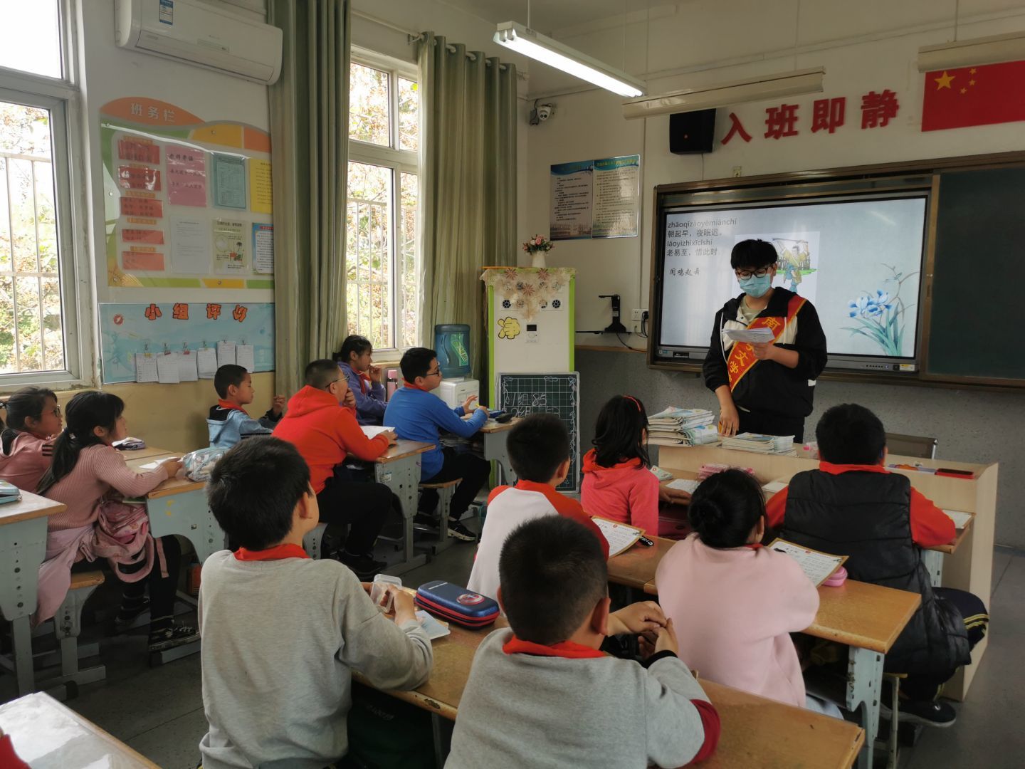 活动开始前,志愿者们与杨庄小学教师们主动交接,在了解各年级学生课堂进度后,合理制作PPT,以保证授课的质量和针对性。活动开展过程中,每个班级分配有两名志愿者,一名志愿者用闻鸡起舞、宋濂抄书等故事生动形象地讲解冠正、衣洁、从容等道理,让学生更清晰地了解优秀传统文化的深刻内涵,之后与同学们一起学习作揖礼,在琅琅读书声中辨字音、明字义,另一名志愿者则负责维持课堂纪律,保证课堂进度,营造活跃的课堂氛围,使学生能够投入进来认真学习《弟子规》的精神内涵。两位志愿者相辅相成,共同完成了教学任务,并采用提问加分制的形式,与学生进行了积极友好的互动。最终,活动在同学们的热烈掌声中圆满结束。