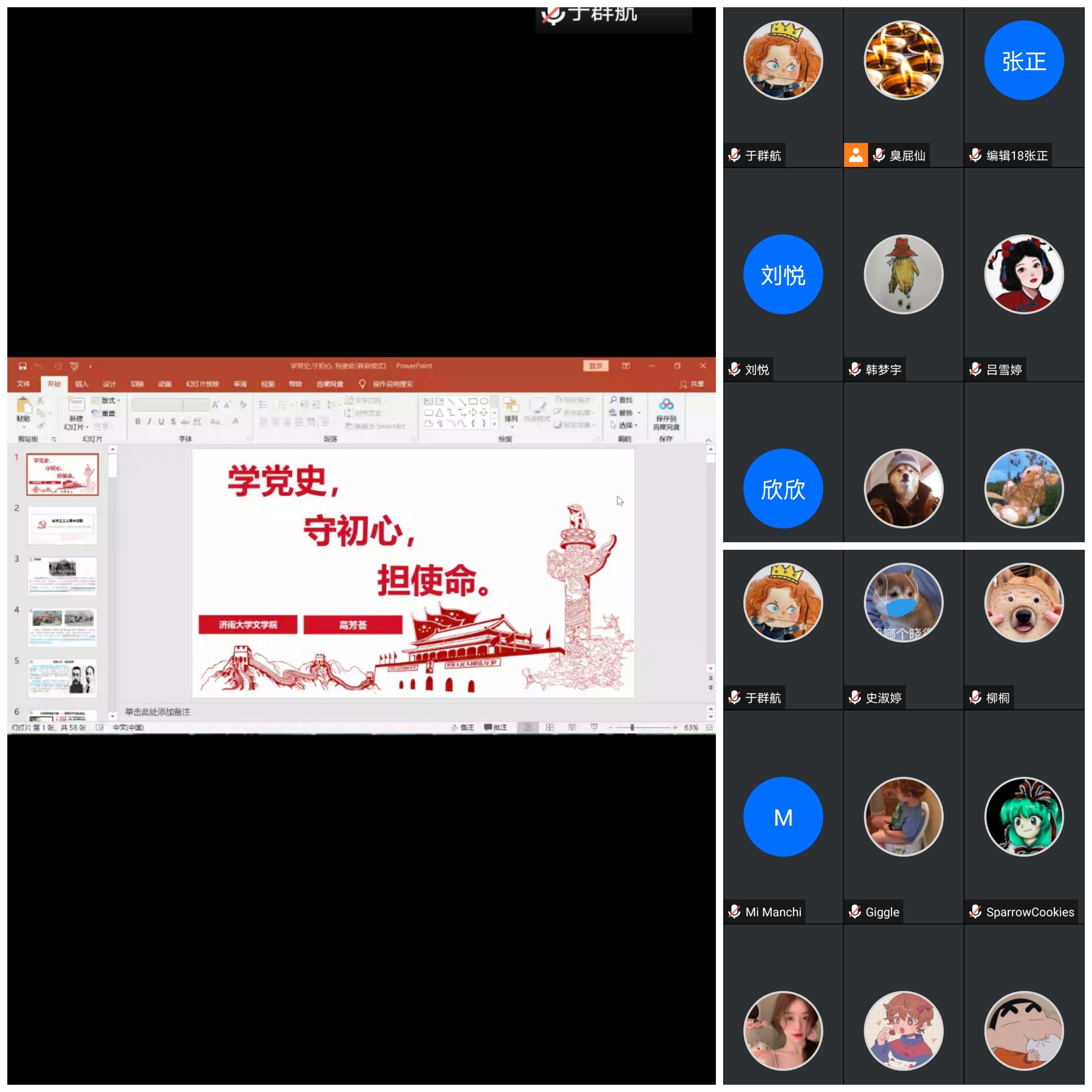 晚上九点,活动正式开始。讲解人婀娜儿在播放“学党史,守初心,担使命”主题PPT,讲解“中共一大”的召开内容之后,同学们热烈鼓掌,对学习了解到的“中共一大”知识进行了热烈讨论发言,活动现场激情澎湃,同学们热情高涨,爱国爱党热情得到了充分激发。