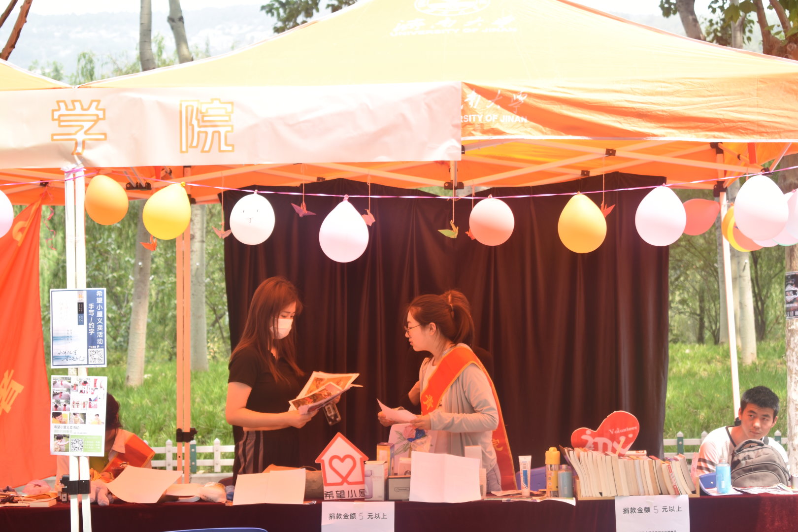 活动在八食北街进行,志愿者提前赶到现场,搭起帐篷张贴宣传广告,对摊位进行了简单装饰并摆出义卖物品。面对络绎不绝的人群,志愿者们进行了有条不紊的分工,一些志愿者对物品定价后引导后续付款流程,提供卡片盖章服务和记录收支明细;一些志愿者积极地进行宣传介绍,积极完善摊位管理和摊位装饰,吸引了许多同学前来购买物品。每一个购买义卖物品的同学都可以在物品上印上专属的“小太阳”印章,留下一份爱心满满的纪念。活动最后,WilliamHILL中国与其他学院进行了贺卡互赠和礼物互赠。绝大多数捐赠的物品通过义卖找到了自己新的归属,志愿者协会募集到了大量的爱心资金,为希望小屋的儿童们带来了新的希望。