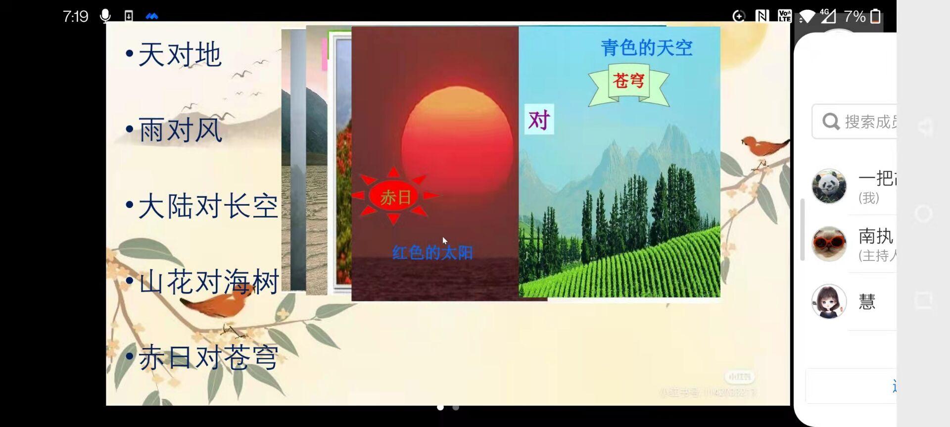 活动准备期间,志愿者们根据文学经典导读、经典国学蒙学讲解、小学作文写作基础等可供选择的教学内容进行了充分准备,与小学生的家长就孩子的学习情况进行了有效的沟通,并制作了图文丰富的PPT辅助教学。活动过程中,志愿者们主动报名自己擅长的内容,通过社区人员与参与的小学生们及其家长进行对接,以线上腾讯会议的方式进行了授课。志愿者们根据教学内容,帮助小学生们加强对千字文、笠翁对韵等文学知识的了解,耐心地为小朋友们讲授相关文学知识。在课堂互动中,小学生们热情洋溢,表现出强烈的求知欲,积极提出问题与回答问题,形成了活跃和谐的课堂氛围,本次活动取得良好效果。