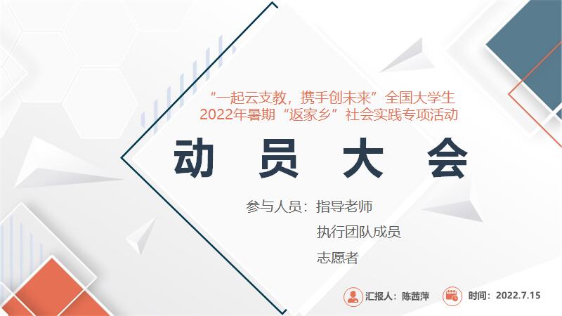 会上,活动领队介绍了该活动的参与学院及执行团队,向志愿者们详细展示了本次“云支教”的主要活动流程,强调了云支教过程中的注意事项,对志愿者承诺书的相关内容进行说明,对志愿者提出的相关问题进行解疑答惑,并发出号召:“大学生志愿者应当以十足的精神气积极参与本次实践,这不仅是一次锻炼自我的机会,更是对“奉献,互助,友爱,进步”志愿者实践精神的诠释,相信大家会在本次实践活动中收获许多!”7月20日,本次“云支教”社会实践活动将进入大学生志愿者与中小学生的匹配与对接阶段,云支教活动正式开始。