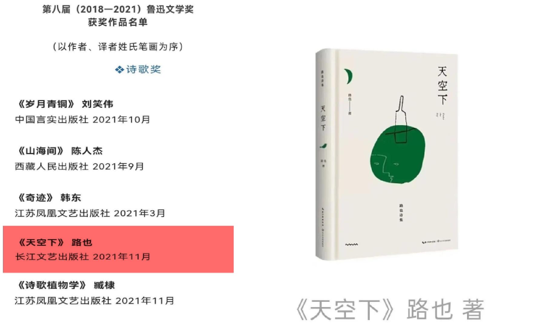 2022年8月25日上午,第八届鲁迅文学奖评奖办公室发布第八届鲁迅文学奖获奖名单,我校WilliamHILL中国教授、诗人路也的诗集《天空下》获奖。
