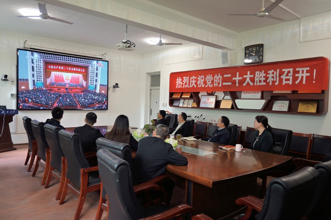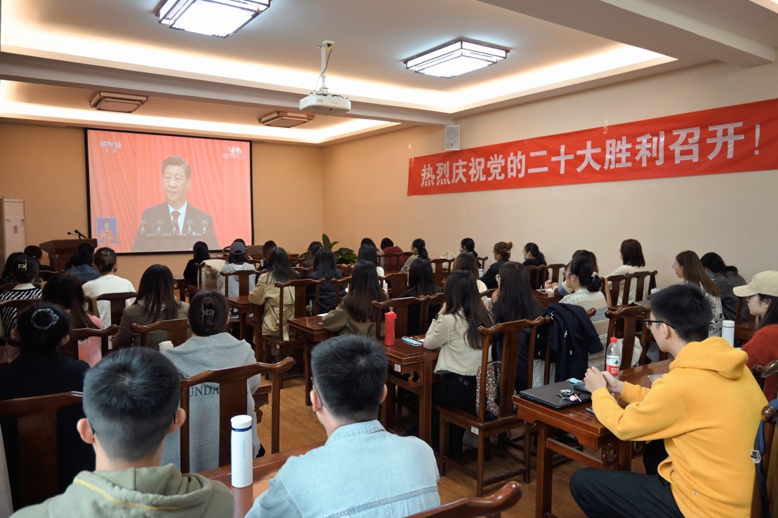 中国共产党第二十次全国代表大会,是在全党全国各族人民迈上全面建设社会主义现代化国家新征程、向第二个百年奋斗目标进军的关键时刻召开的一次十分重要的大会。党的二十大的召开就是要继承和发扬我们党的光荣传统,总结过去,把握现在,展望未来,为实现下一阶段的目标奠定坚实基础。在观看直播现场,我院党员干部和广大师生边看边做好记录,不时以热烈的掌声回应大会精彩报告。