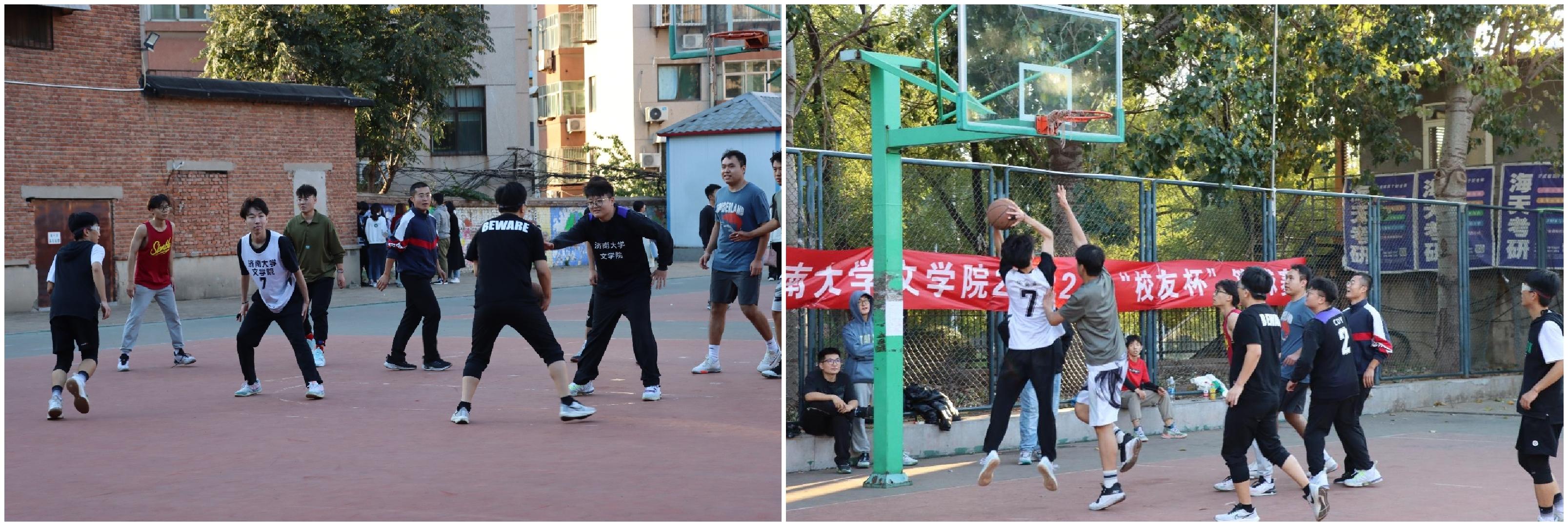 篮球赛在裁判的哨声中拉开了帷幕,高高抛起的篮球点燃了比赛的激情。本着友好、拼搏的精神,师生们尽情发挥各自的球技。老师们在赛场上抢、防、攻、守,配合默契,学生们也不甘示弱,团结一致。双方你来我往,比分交替上升,比赛精彩纷呈,博得阵阵掌声。赛场上,各队队员配合默契,攻防有序,师生情绪高涨,比赛拉近了师生们的距离。比赛结束后,学院党委书记陈卫东向取得胜利的队伍表示祝贺,并向毕业校友表达美好祝愿,寄予毕业学予以殷切期望,希望他们在人生的新阶段继续踔厉奋发、笃行不怠。院长张兵对师生们在比赛中表现出的良好精神风貌表示高度认可,逐一与校友交流,了解近况,希望大家时刻秉持“弘毅、博学、求真、至善”的校训,“文心养正,弘毅致远”的院训,能够把比赛中进取向上的精神发扬到工作和 学习中,在自己的岗位上再创新功。