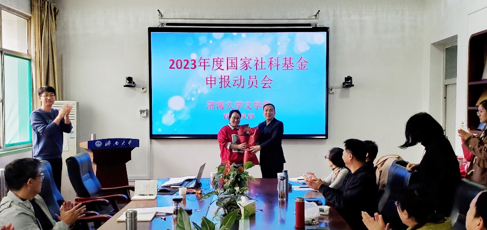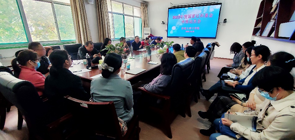 会上,张兵院长首先作了动员讲话,他肯定了教师们在科研攻关方面的辛勤付出与卓越成绩,总结了近年来学院在国家社科基金立项方面取得的优异成绩,他强调,老师们要高度重视国家社科基金项目申报工作,早准备、早着手、早论证。为此,张院长对今年学院的国家社科基金项目申报工作提出了三点要求:一是抓源头,项目选题要充分筹划,兼顾专业性、前沿性、科学性。二是抓过程,本子要反复打磨,多请教专家,充分论证。三是抓谋划,要从已立项课题的原创性选题分析开始,到选题论证,到专家把脉,再到修改提升,直至交出高质量的本子。张兵院长要求各学科方向教师要充分发挥主动精神,踔厉奋发,勇于创新,持续努力,争取在2023年国家社科基金项目立项中取得更好的成绩,为推动学院高质量发展和博士点申报等作出积极贡献。紧接着,张兵院长对2022年获得国家社科基金立项的刘传霞教授与李翠芳副教授进行了表彰。