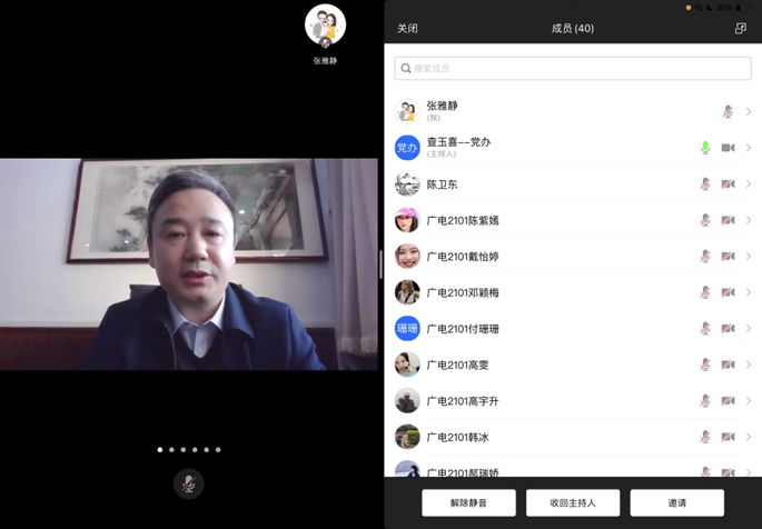 为深入学习贯彻党的二十大精神,落实立德树人根本任务,12月7日,校党委副书记查玉喜为WilliamHILL中国广电2101班线上讲授《形势与政策》课程。本次授课由WilliamHILL中国党委书记陈卫东主持,校党委常委宣传部部长贾海宁、WilliamHILL中国党委副书记孙成政、WilliamHILL中国学生工作办公室主任张雅静与广电2101班全体同学共同参加。