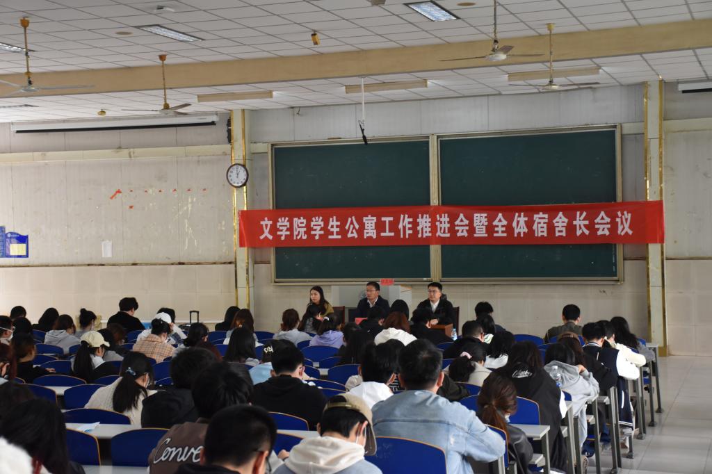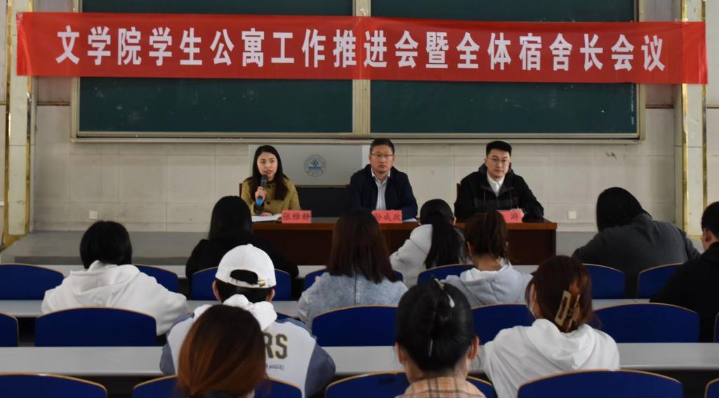 学院学办主任张雅静传达了学校对公寓工作的会议精神,对宿舍卫生、违规悬挂床帘、人走未断电等宿舍违纪问题提出具体要求,指出宿舍长要履行工作职责,当好学院学生、老师之间的沟通员,遇到问题及时跟老师反映、沟通,从关心每位舍友的身心情况和日常行为规范入手,为建设整洁、平安公寓贡献自己的力量。