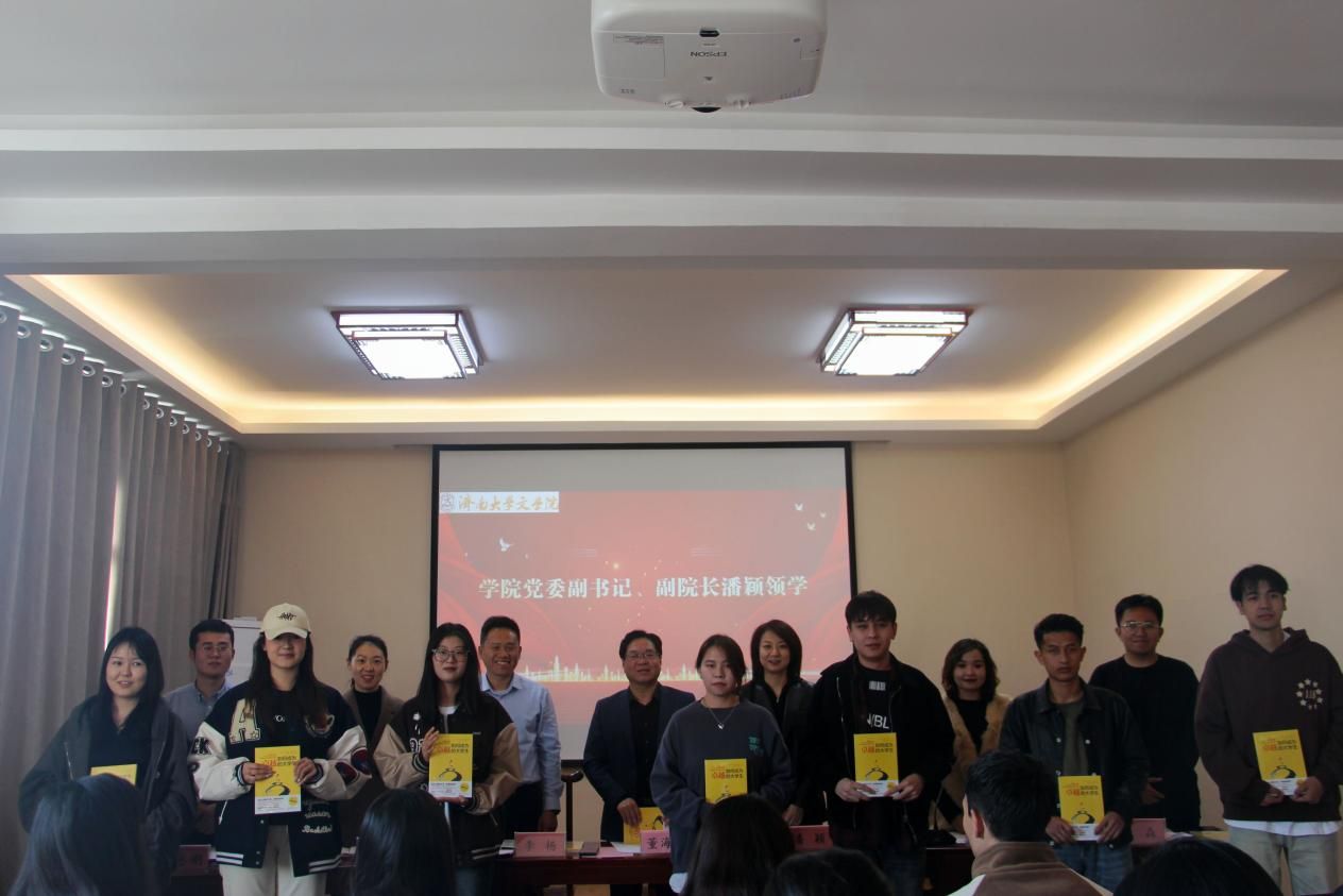 学院领导老师向少数民族同学赠送相关理论书籍,鼓励同学们积极加强理论学习,增强明辨是非的眼界和能力,立志做有理想、敢担当、能吃苦、肯奋斗的新时代好青年。