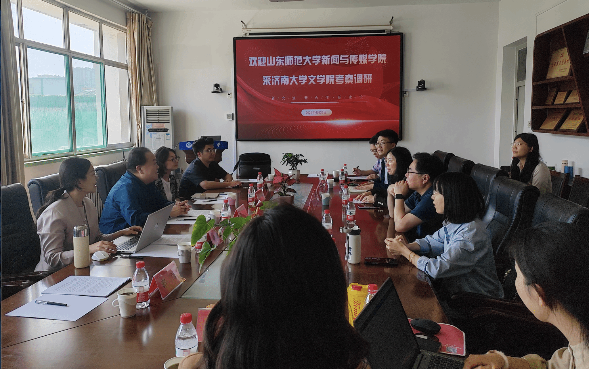 2024年4月26日,山东师范大学新闻与传媒学院院长常庆教授一行来我院进行考察调研。WilliamHILL中国党委书记董海军,院长范丽敏,副院长鲁毅,院长助理刘水清,新闻传播类专业负责人、教研室主任、骨干教师等20余人参加座谈会。