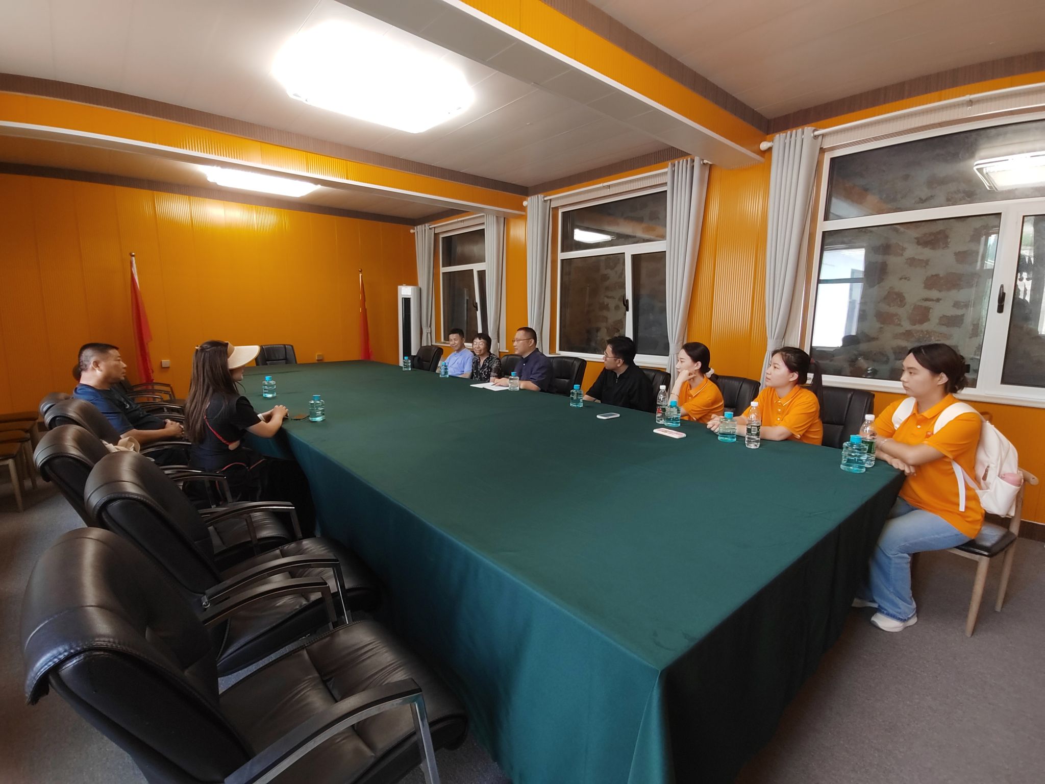 最后,团队成员同灵岩村村支书马永奇、市民政局驻村选调生、灵岩村党支部书记助理滕杰、灵岩村村委委员、山东灵岩大佛山旅游开发有限公司办公室副主任刘慧和山东灵岩大佛山旅游开发有限公司办公室副主任罗敏进行座谈。了解了关于灵岩村开发与建设的一些细节以及工作在村里的年轻人对于村庄发展的看法,讨论了下一步的调研方向和书写主题。