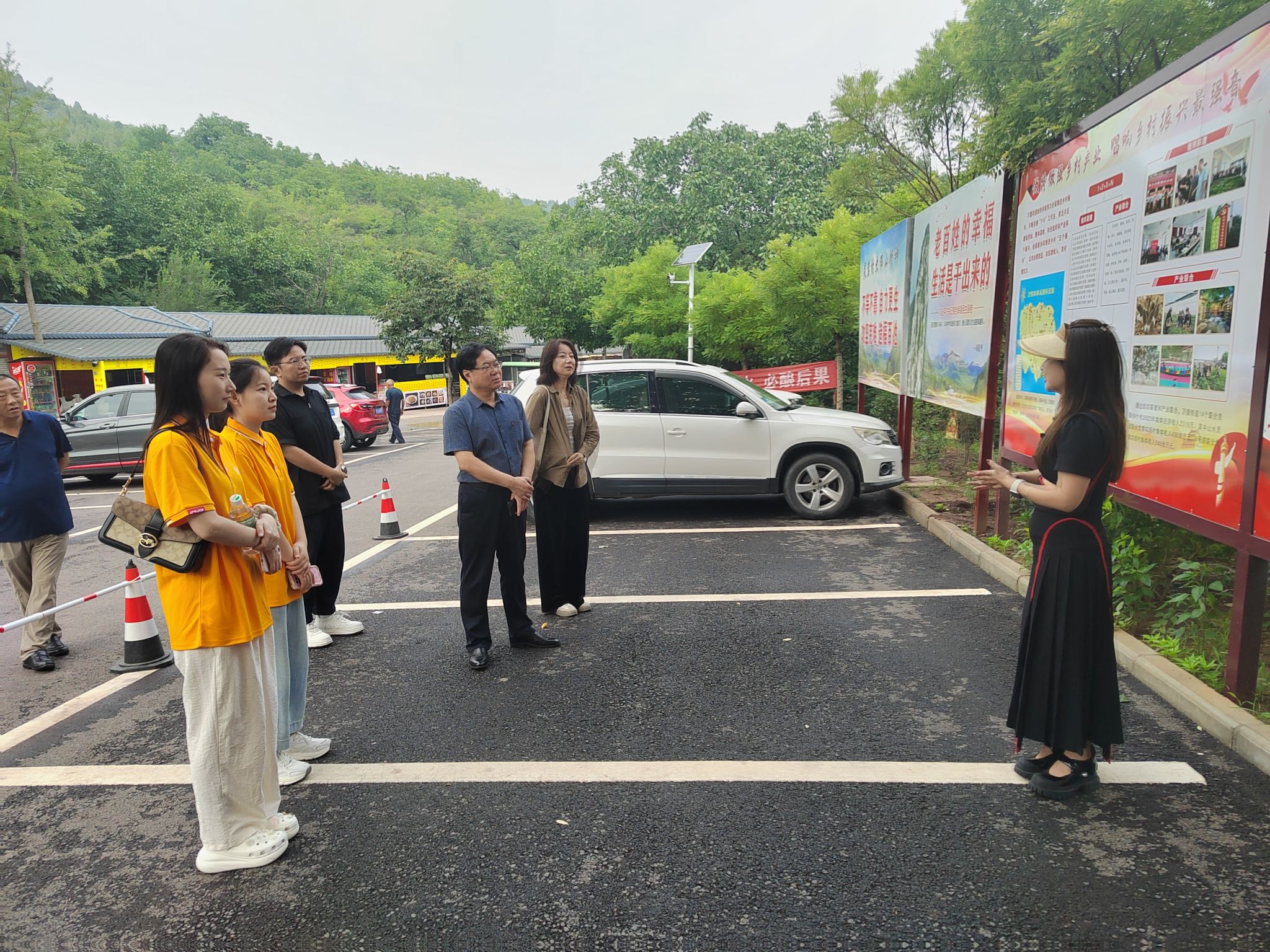 接下来,团队成员实地调研了该村闲置资源的开发情况,对当地民宿、儿童乐园等旅游综合体建设有了初步的认识,对当年灵岩村村民肩挑手扛进行景区建设,用半年实践纯手工开出近万米山路的壮举有了切实的体会。