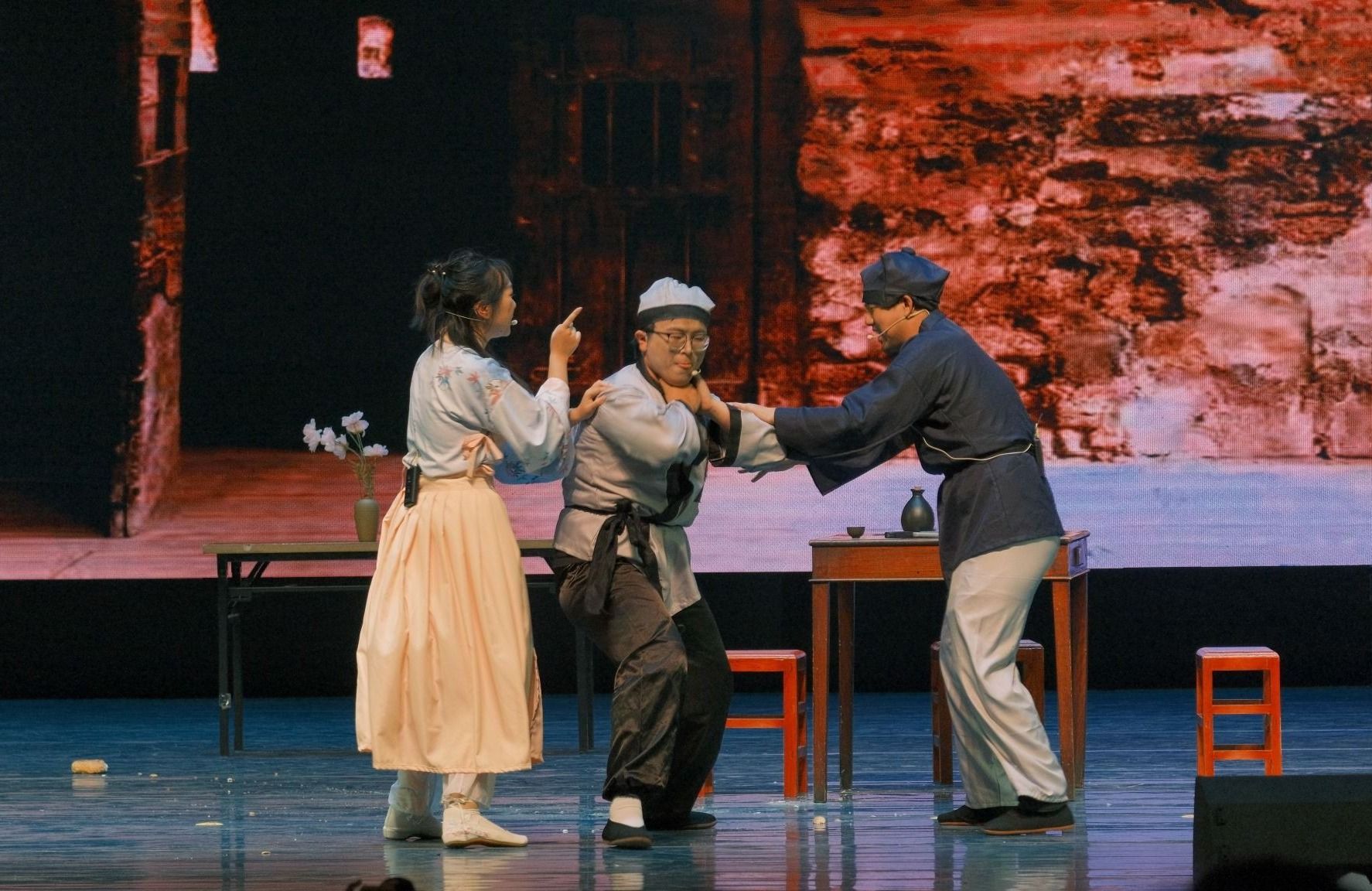 本次大剧排演自前期准备到正式公演历时近七个月,从演员的面试选角到剧本的围读探讨,从道具的采买制作到舞台的灯音布景设计,三十余位演职人员潜心打磨大剧方方面面,最终呈现出独具匠心的精彩演出效果。演出过程中掌声不断,观众们不仅为演员们的精湛演技所折服,更为剧中人物的情感纠葛所打动。从欢笑到泪水,从希望到失望,每一个细节都展现出了人生的百态,展现出话剧艺术的独特魅力。本次大剧演出通过复刻经典话剧,唱响文化风帆,让广大师生在经典剧目的浸润中感受话剧艺术的深厚魅力,获得身心愉悦的同时,提高自身文化素养和艺术修养,丰富精神世界。
