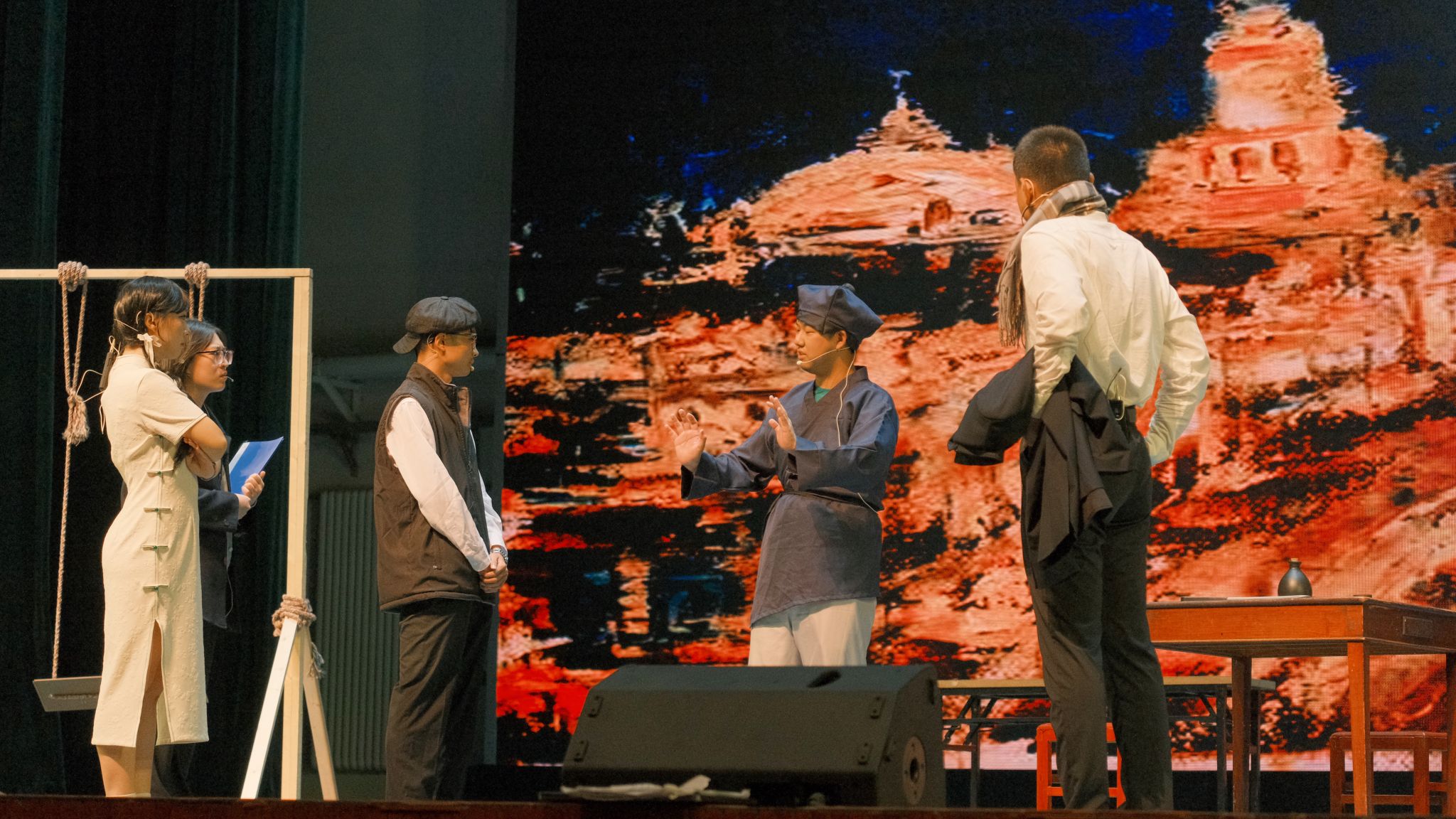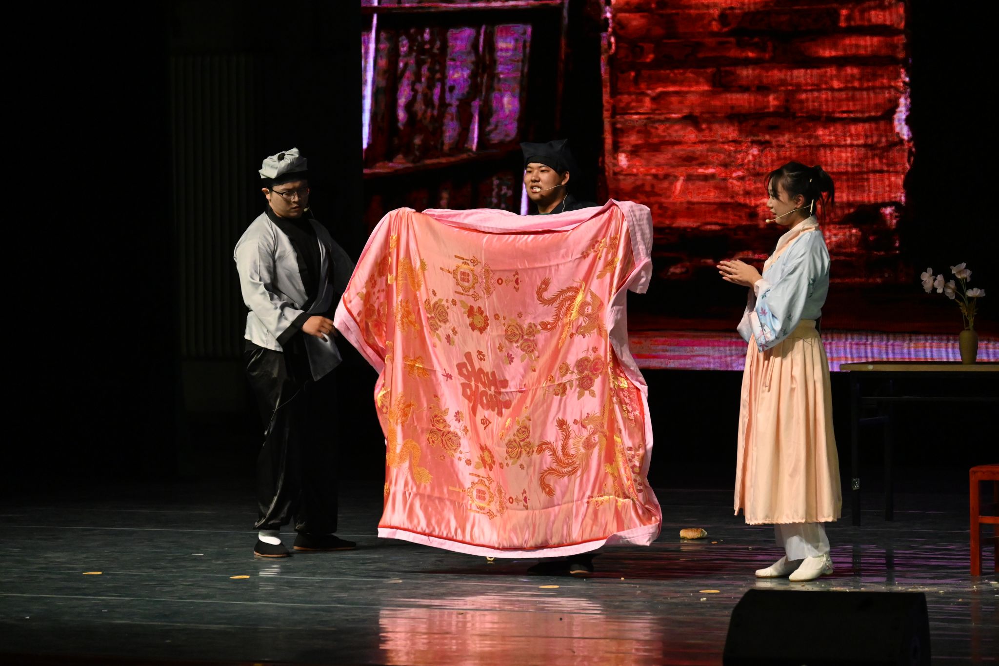 《暗恋桃花源》改编自中国著名剧作家赖声川的同名剧作品,讲述了两个剧组在公演前夕因排练场地使用权所引起的争执,全剧通过“戏中戏”的叙事手法,交叉演绎了发生在不同时代和不同环境背景下的两个完全不相干的故事,展示了不同故事、不同时空下人们对不同事物的追寻。青笋剧团的同学们凭借出色的演技、默契的配合,将这部经典之作重新演绎,为观众们带来了全新的艺术体验。