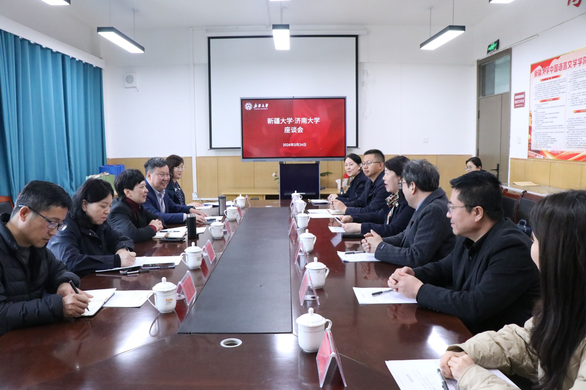 为推动中文学科深度服务国家战略,实施国家通用语言文字普及攻坚和质量提升行动,助力边疆地区高质量发展,3月23日至25日,williamhill党委副书记商华带队赴新疆师范大学、新疆大学、喀什大学三所高校开展调研交流,学校统战部部长徐庆国、WilliamHILL中国院长范丽敏等一同参加调研。