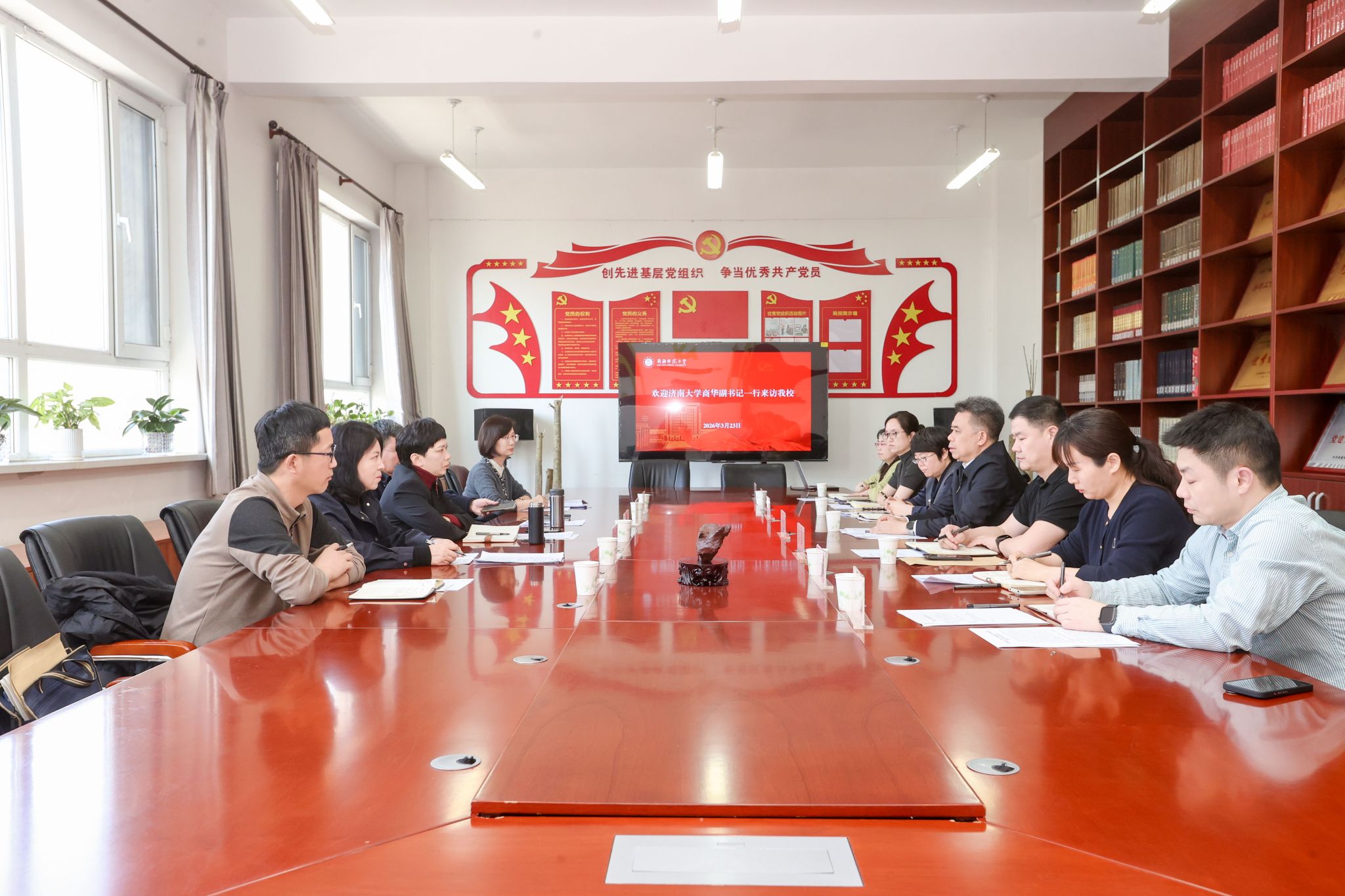 在自由交流环节,我校与三所高校围绕人才培养、学科建设、科研合作、社会服务等议题展开深入探讨,重点聚焦如何通过校际合作服务中华优秀传统文化传承发展、助力边疆地区高质量发展。各方一致表示,将持续加强务实合作,在语言文字推广、实习基地建设等方面不断深化拓展,推动合作走深走实。