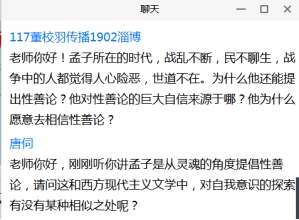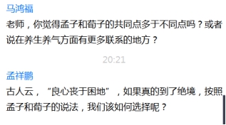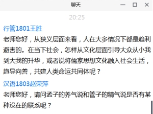 讨论环节,何家兴老师谈了三点感受:第一,经典离我们并不遥远,很多词语沉淀在日常生活中,应善于发现和思考;第二,科学研究应立足于文本,任何结论和观点都应基于扎实的文本对比;第三点,应关注先秦不同学派之间的共同之处。同学们就孟子的“性善论”、孟子与荀子之间的思想异同、孟子“养气说”与管子“精气说”的联系等话题,展开互动。翟教授高度评价williamhill的学生,夸奖他们善于提问、善于读书。