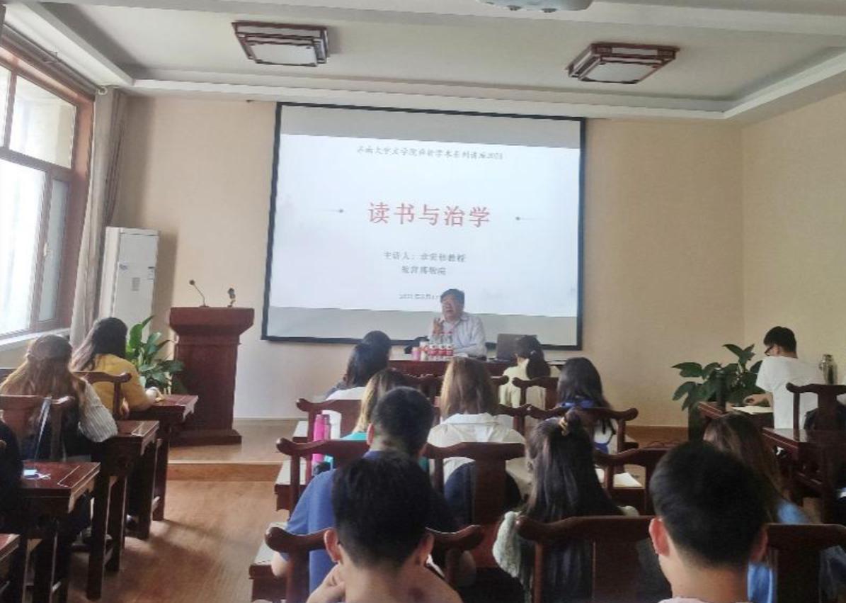 围绕“课堂之外应该怎样读书”,章宏伟教授阐述六种读书与治学的方法。首先,他指出要建立自己的学术地图,树立“广博而精约”读书观念,效仿“好读书,不求甚解;每有会意,便欣然忘食”的阅读状态;重视《四库全书总目》“辨章学术、考镜源流”的功能。第二个读书方法是“提要钩玄”,即读书要抓重点。第三个方法为精读,援引苏东坡读书“八面受敌”法,即一本书要读数遍,每遍只围绕一个问题。第四个方法是“札记之法”,强调要多动笔,记录下读书体会,按照“阅读—罗列—比较—判断—验证”的顺序。第五个方法,借用钱穆先生的读书观念,强调要读大部头书。第六个方法是“史源学”方法,推荐了陈垣先生的《史源学杂文》。最后,章宏伟先生再次强调,要多读书,更要找到合适自己的读书方法。