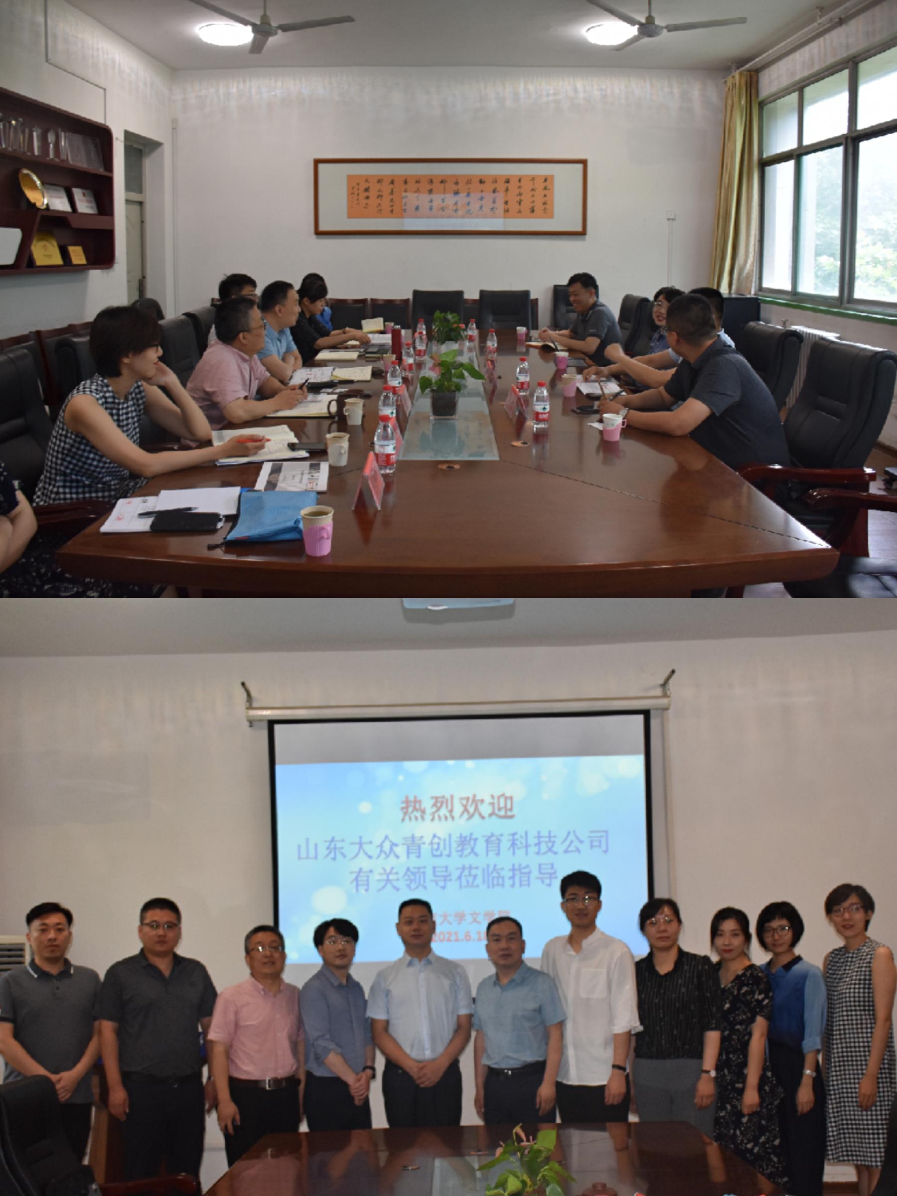 山东大众青创教育科技有限公司,由大众报业集团旗下教育产业投资平台济南大众文贤基金管理有限责任公司,联合共青团中央中国青年创业就业基金会旗下青创共和(北京)科技有限公司,共同发起成立,围绕融媒体、教育等领域,进行高校校企合作、产业学院运营的平台公司。刘翔董事长介绍了大众青创公司的发展状况和市场运营情况。青创共和(北京)科技有限公司常务副总裁陈翼科就人才培养、科研创新、社会服务、就业创业等方面介绍了公司的优势,他希望双方实现优势互补,共同推进人才培养。