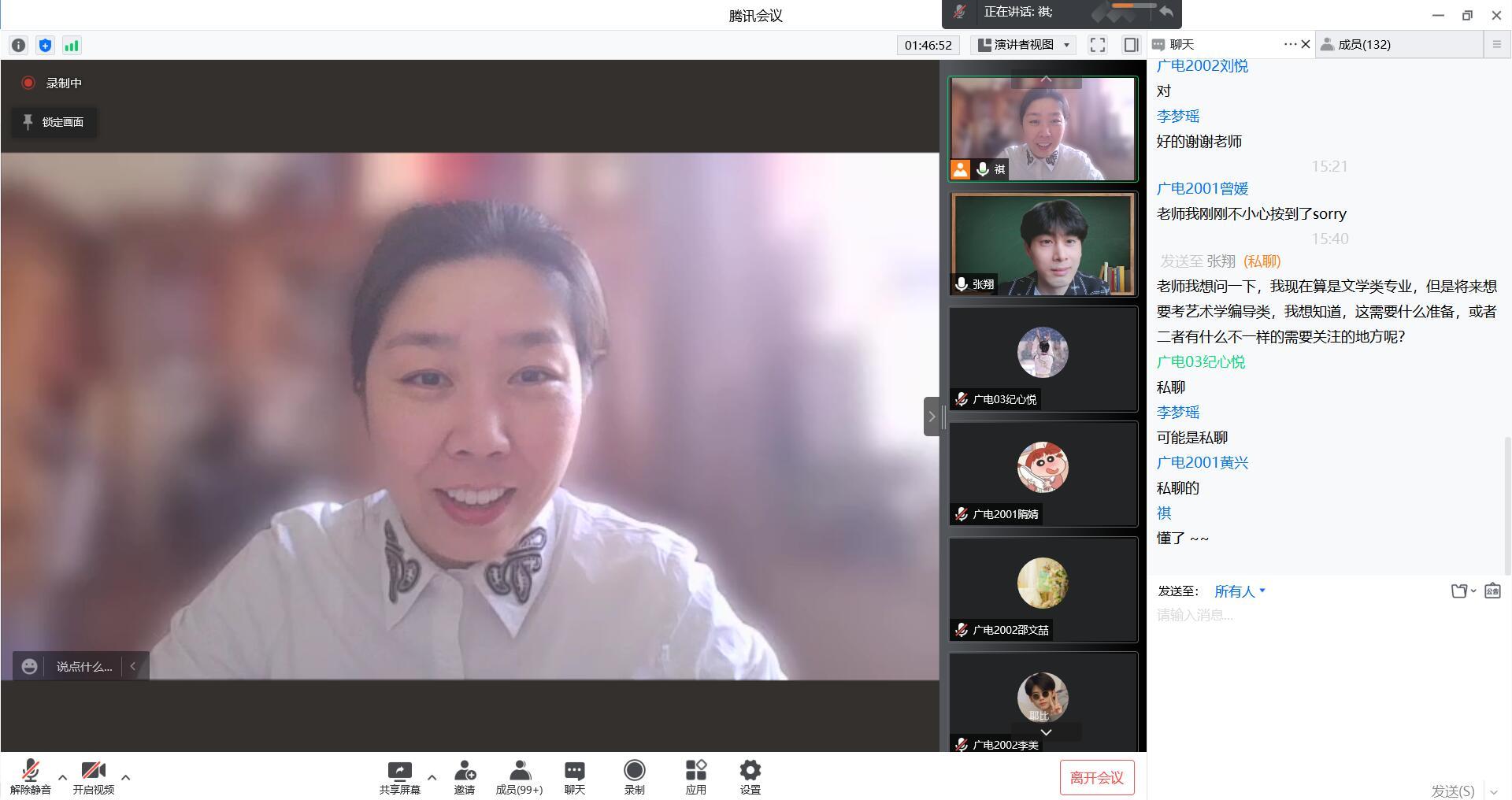 在交流讨论环节,张翔老师、孙佳祺老师和我院中文系王国伟老师针对“艺术与市场”等话题与同学们展开讨论,同学们收获颇丰。