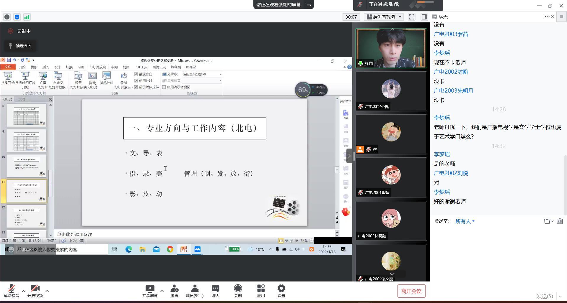 2022年4月13日下午2点,我院邀请北京电影学院影视管理专业博士、山东工艺美术学院专任教师张翔为WilliamHILL中国18级广播电视学专业学生作了题为《影视类专业的认知与前景》的线上讲座。讲座由WilliamHILL中国广播电视学专业负责人孙佳祺老师主持进行。