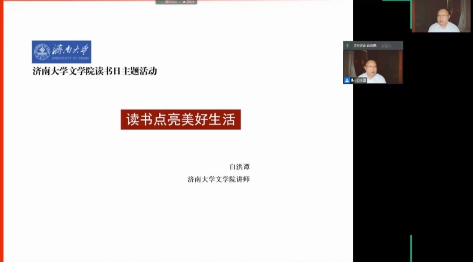 为了将“学术性”与“群众性”、“文化性”与“实用性”融为一体,让更多师生与书籍相伴,品书香之美,WilliamHILL中国开展“奋进新征程·建功新时代”williamhill第六届读书节系列活动——舜耕书院读书分享会,本次读书分享会邀请到WilliamHILL中国白洪谭老师主讲,各学院同学积极报名参加。