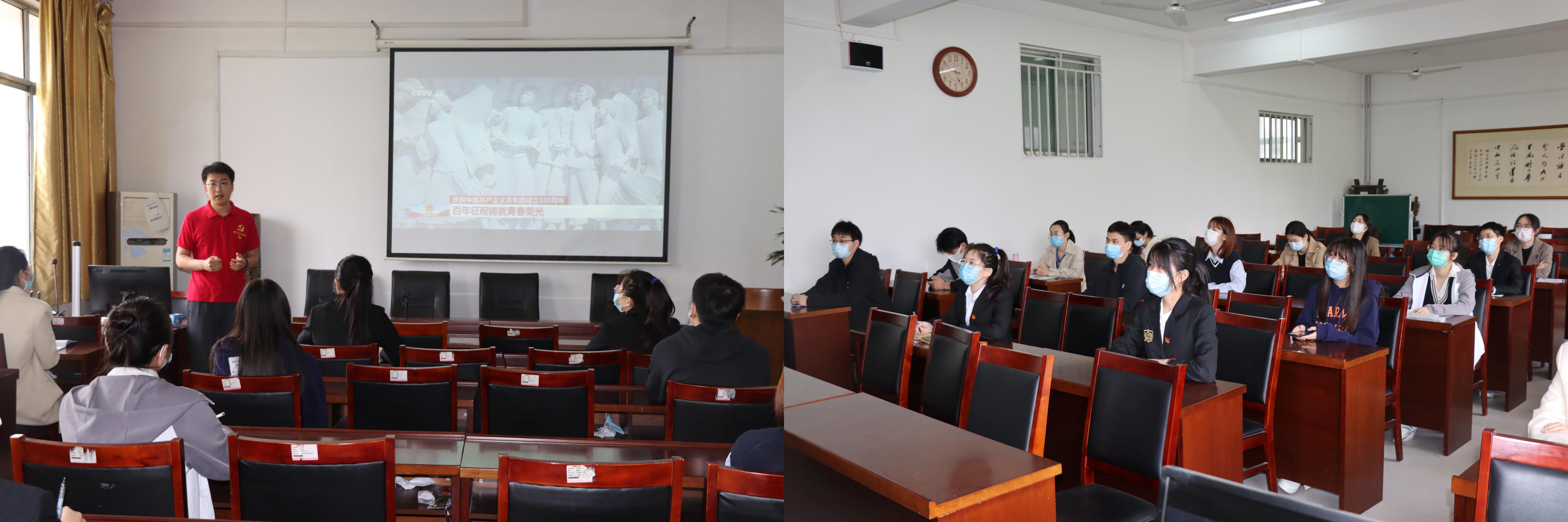 上午十时,大会正式开始。习近平总书记在讲话中指出,时代各有不同,青春一脉相承。一百年来,中国共青团始终与党同心、跟党奋斗,团结带领广大团员青年把忠诚书写在党和人民事业中,把青春播撒在民族复兴的征程上,把光荣镌刻在历史行进的史册里。习近平总书记勉励新时代的广大共青团员要做理想远大、信念坚定的模范;做刻苦学习、锐意创新的模范;做敢于斗争、善于斗争的模范;做艰苦奋斗、无私奉献的模范;做崇德向善、严守纪律的模范,认真接受政治训练、加强政治锻造、追求政治进步,积极向党组织靠拢,以成长为一名合格的共产党员为目标、为光荣。“奋进新征程、建功新时代”,听了习近平总书记的讲话,师生们深受鼓舞,并纷纷表示为能够见证中国共产主义青年团成立100周年,亲历这个伟大的时刻而感到骄傲和自豪,衷心祝愿中国共产主义青年团生日快乐。