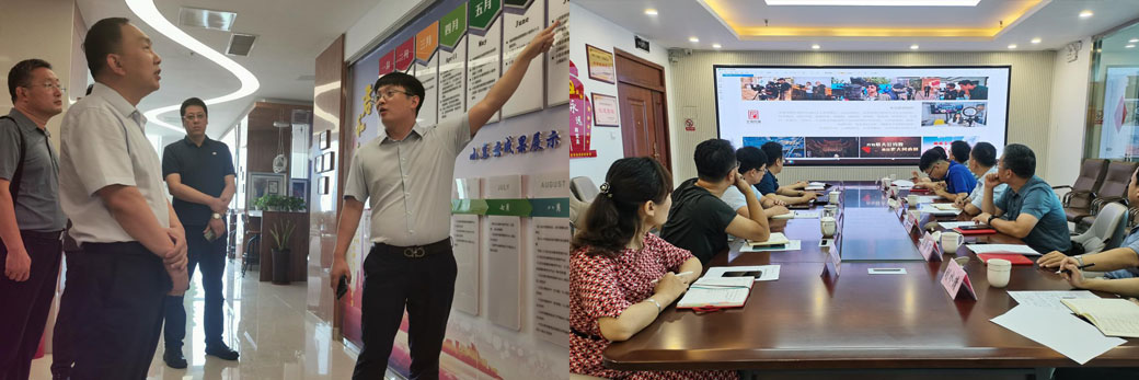 座谈会前,张兵一行参观了新科程集团总部的企业发展长廊、党建活动中心和演播中心。