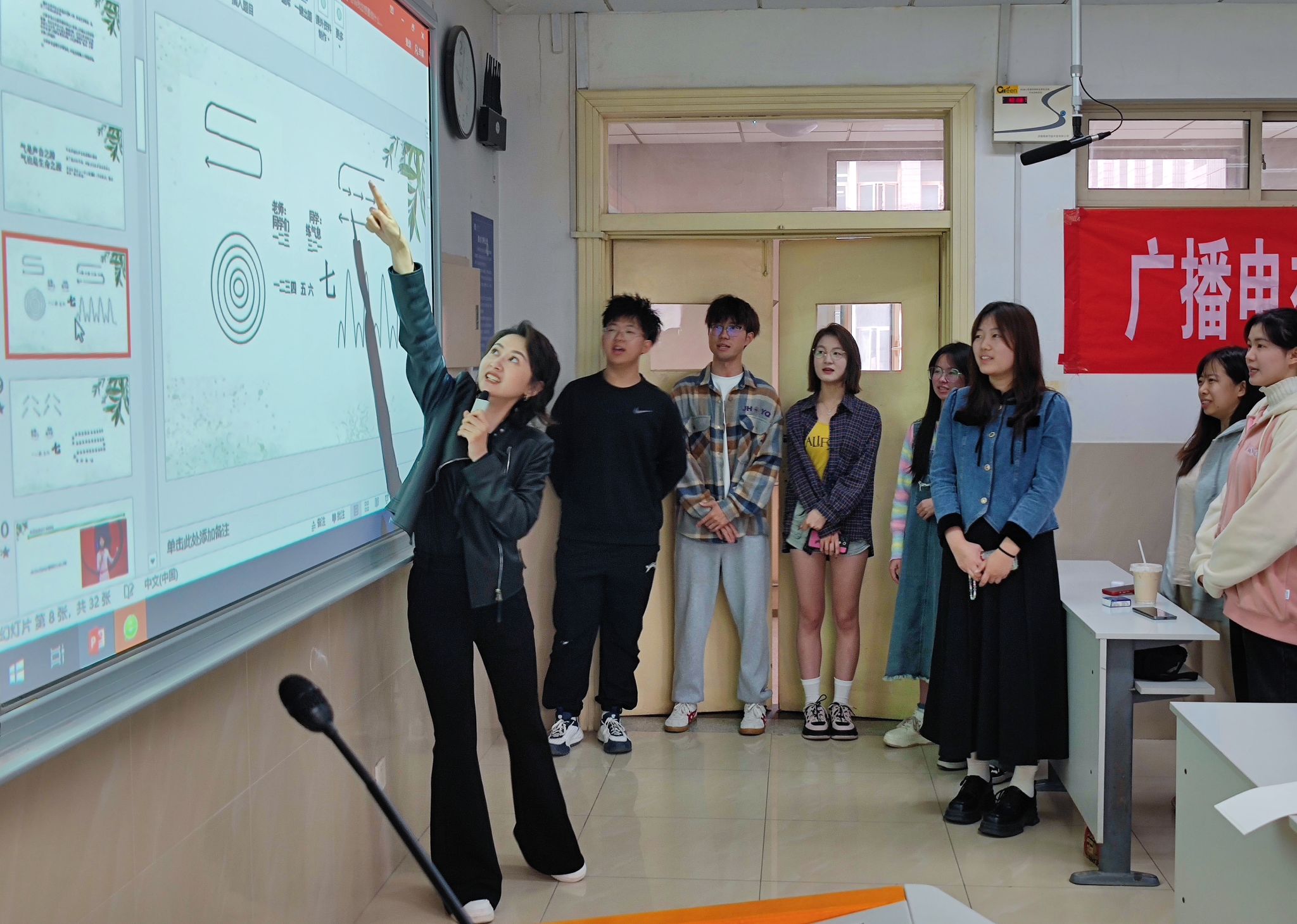 本次讲座由广播电视学专业负责人孙佳祺老师主持,22级广电专业学生全体参与。讲座伊始,薛征从“播音员与主持人的区别”、“怎么样拥有魅力的声音”两个问题引入。在分享过程中,同学们积极参与了发声练习、主持播报等互动环节。随后,薛征从自身实际出发,饱含热情地分享了自己作为主持人在演播室的工作经历和经验。最后,薛征真诚分享了自己的热爱与生活,她表示:要做自己喜欢并且擅长的工作。“自觉而奋斗者,皆青年”,薛征以此作为寄语,呼吁在场同学把握当下,勇于拼搏,找到自己真正热爱的东西并为之努力。