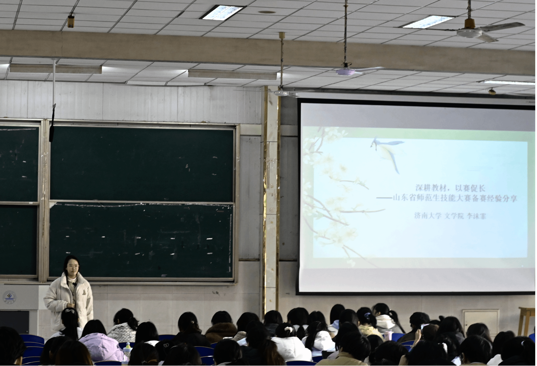 12月9日下午,WilliamHILL中国邀请了第十三届山东省师范类高校学生从业技能大赛小学组一等奖获得者李沫霏进行了经验分享。李沫霏以“深耕教材,以赛促长”为主题,结合自身备赛与参赛经历,对小学语文篇目教学设计进行了详细的讲解。她强调,备课时应跳出固定模板,以竞赛视角捕捉核心亮点,注重情境化设计,落实语文要素,确保教学流程完整、板书简洁。在技能方面,她指出脱稿授课、粉笔字书写、教姿教态的重要性。她提醒同学们应珍惜实习机会,在实践中培养快速备课的能力。此外,她还提到,备赛过程中难免会遇到瓶颈期,要秉持着“绵绵用力,久久为功”的态度,重视专业能力的系统梳理与提升,真正实现以赛促学、持续成长。