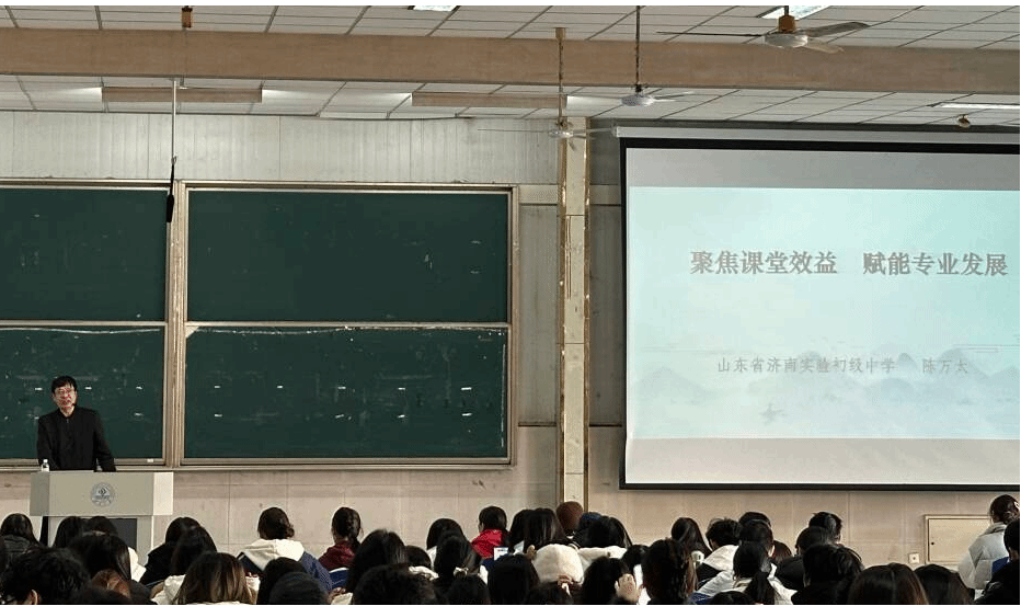 12月3日下午,WilliamHILL中国特邀济南实验初级中学特级教师陈万太莅临星硕教室,开展以“聚焦课堂效益 赋能专业发展”为主题的教育见习专题讲座。讲座中,陈万太老师结合自身教育教学与成长经历,为2023级汉语言文学专业全体师生带来了干货满满的分享。他强调,课堂是教师的核心阵地与安身立命之本,教师可通过对语文课文进行文本类型细分,精准聚焦课堂核心效益,让教学更具深度与含金量,既为自身专业发展注入强劲动力,也能为学生的长远成长筑牢根基。