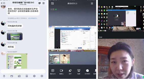 再如孙佳祺老师承担的《非线性编辑》课程,该课程实践性较强,授课难度较大,孙老师及时调整课程中理论与实践部分的授课顺序,同时结合“雨课堂”智慧教学软件,强化与学生的互动与交流,最大限度的保证授课质量。