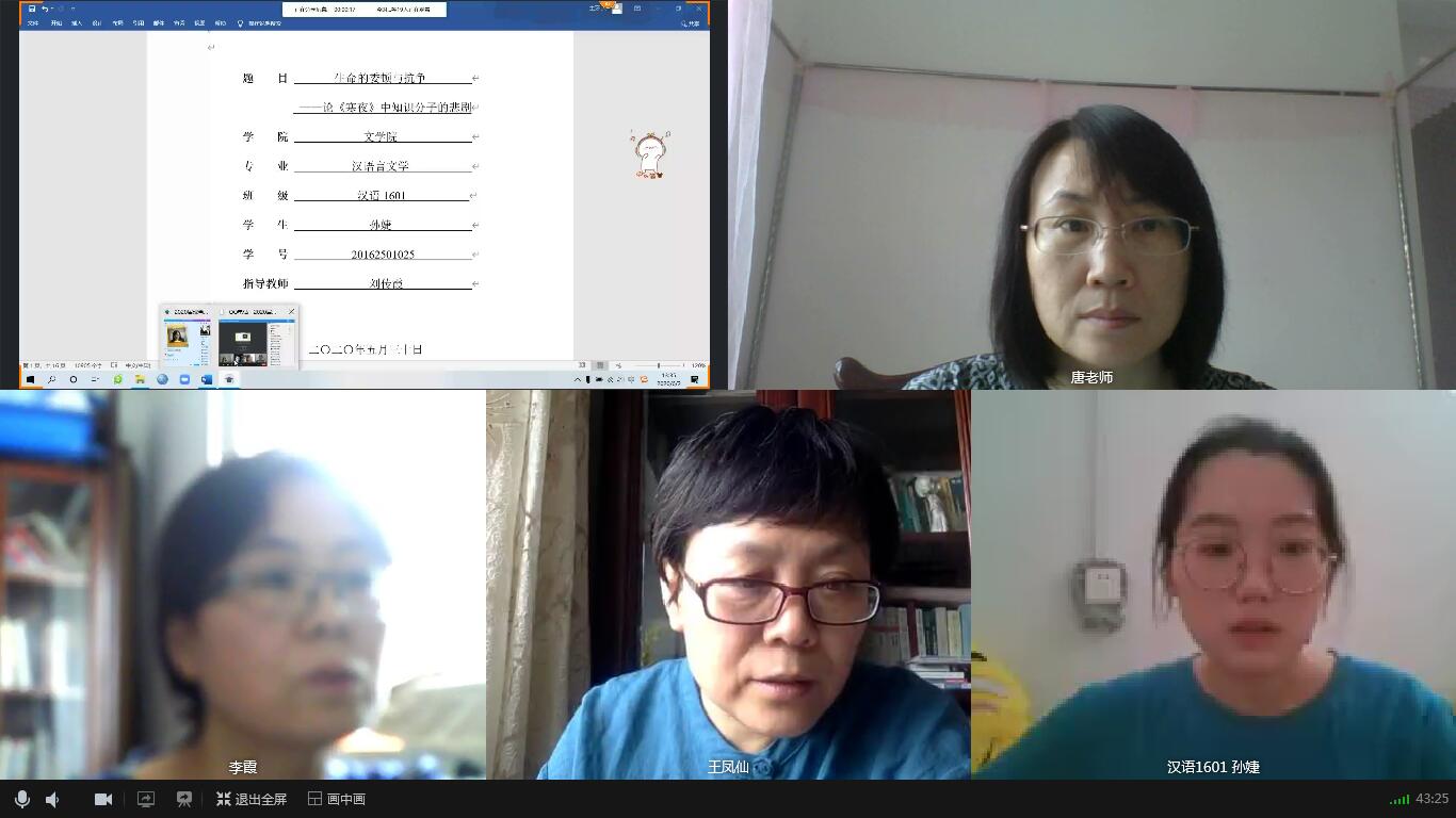 2020年6月9日下午13点,WilliamHILL中国2020届本科毕业生第二次答辩顺利举行。第二次答辩依然采用线上答辩,共分为汉语言文学、新闻传播学两组,共有10名学生参加,7名教师参与答辩工作。经过第二次答辩,10名学生顺利通过。