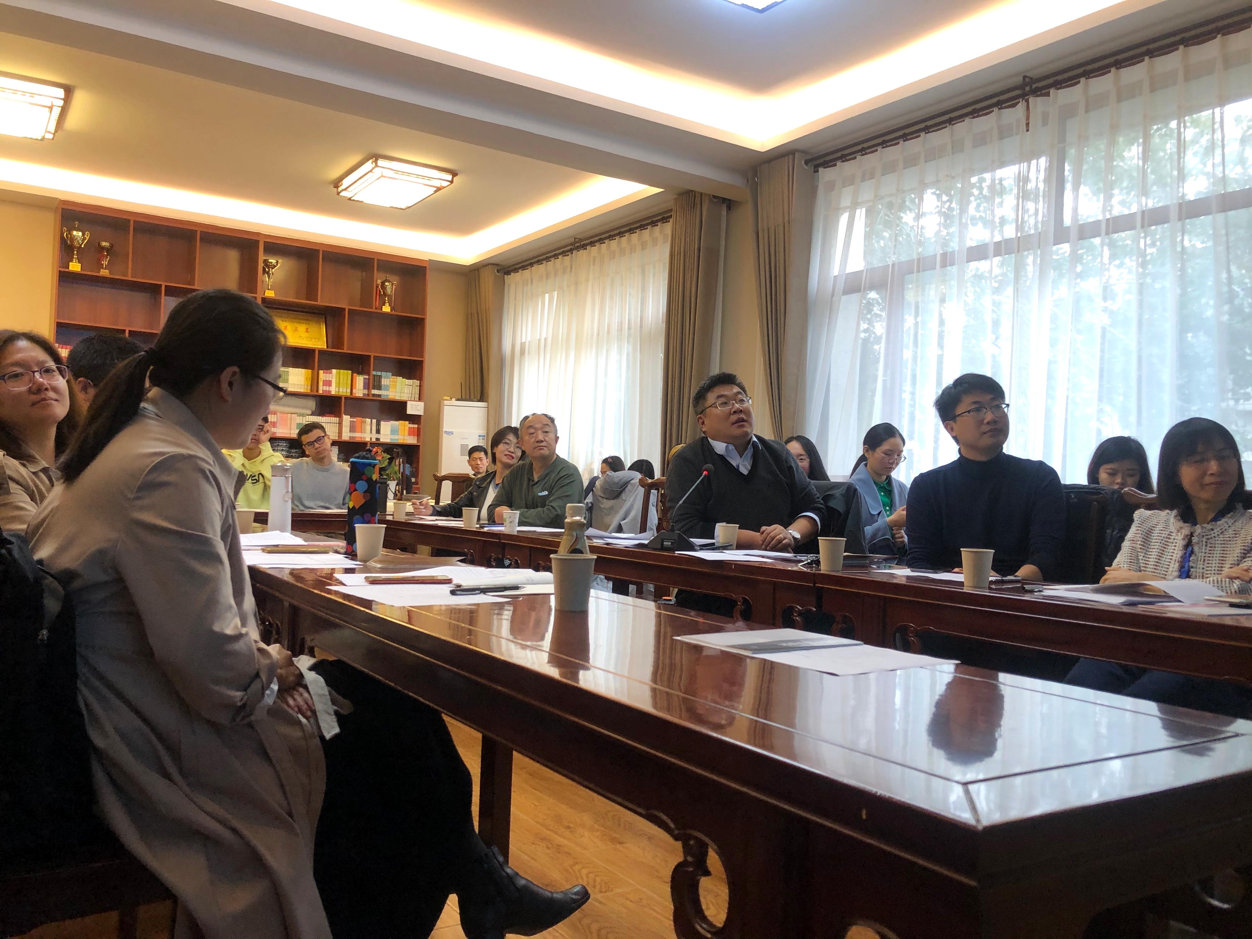会议分为两个阶段。第一阶段,倪万教授向大家分享了山东大学新闻与传播专业硕士点的发展史。倪教授介绍,山东大学新闻与传播学院于2016年独立建院,不断寻求突破口,从引进师资、建设研究中心、改进培养方式、跨界合作等多方面发力,多措并举,发展至今,成效斐然。目前设立大数据、无人机、5G、政策与公共传播、媒体创意与视觉传播、媒介技术与文化传播等六大教育模块,强化大数据与精确传播等文科实验室建设。分享结束后,我院新闻与传播专业教师就研究生实习、专硕理论课讲授等问题与倪教授进行了交流。