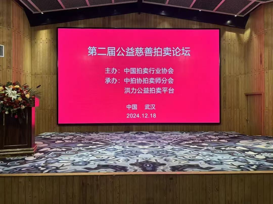 2024年12月18日,由中国拍卖行业协会主办,中拍协拍卖师分会、洪力公益拍卖平台承办的第二届公益慈善拍卖论坛在武汉成功举行。中拍协会长王波、副会长兼秘书长贺慧、副会长刘建民、监事长汤炎非、副秘书长季乐,拍卖师分会副会长郑晓星、副会长陈红军,部分省拍协会长、秘书长和拍卖企业代表等80余人出席本次论坛,我院历史专业副教授、第16期国家注册拍卖师王晓华受邀全程主持了本次论坛。