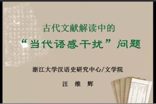 首先,汪维辉教授对“以今例古”现象进行了解读。“以今例古”即用后代的语言文字习惯去误解先前时代的语言文字,是古代文献研究中经常遇到的问题。汪教授认为,该问题出现的原因有二:客观原因是语言文字和思想观念等随时随地在发生变化,主观原因是当代预感干扰。其后,汪教授从词汇、语法、语音、文字、观念5个方面对“以今例古”现象进行论证。如《孔雀东南飞》“新妇起严妆”中的“严妆”一词,当代的一些权威辞书及文选注释均看作状谓结构,即“端整装束”“郑重地梳妆打扮”等,实际上是误解了原意;汪教授认为,这里的“严”本应作“妆”,为避汉明帝刘庄之讳而改作“严”。其他诸如《左传》中“莫余敢侮”的语法问题、《锦瑟》“思”字的读音问题、《诗经》“不素餐兮”的旨意考察等,例证丰富详实,讲解引人深思。最后,汪教授总结出克服当代语感干扰的3条对策:第一,要有清醒的认识,随时思考这个问题,保持警觉;第二,努力培养古代的语感,揣摩古人是如何说话的;第三,需要不断学习和研究。