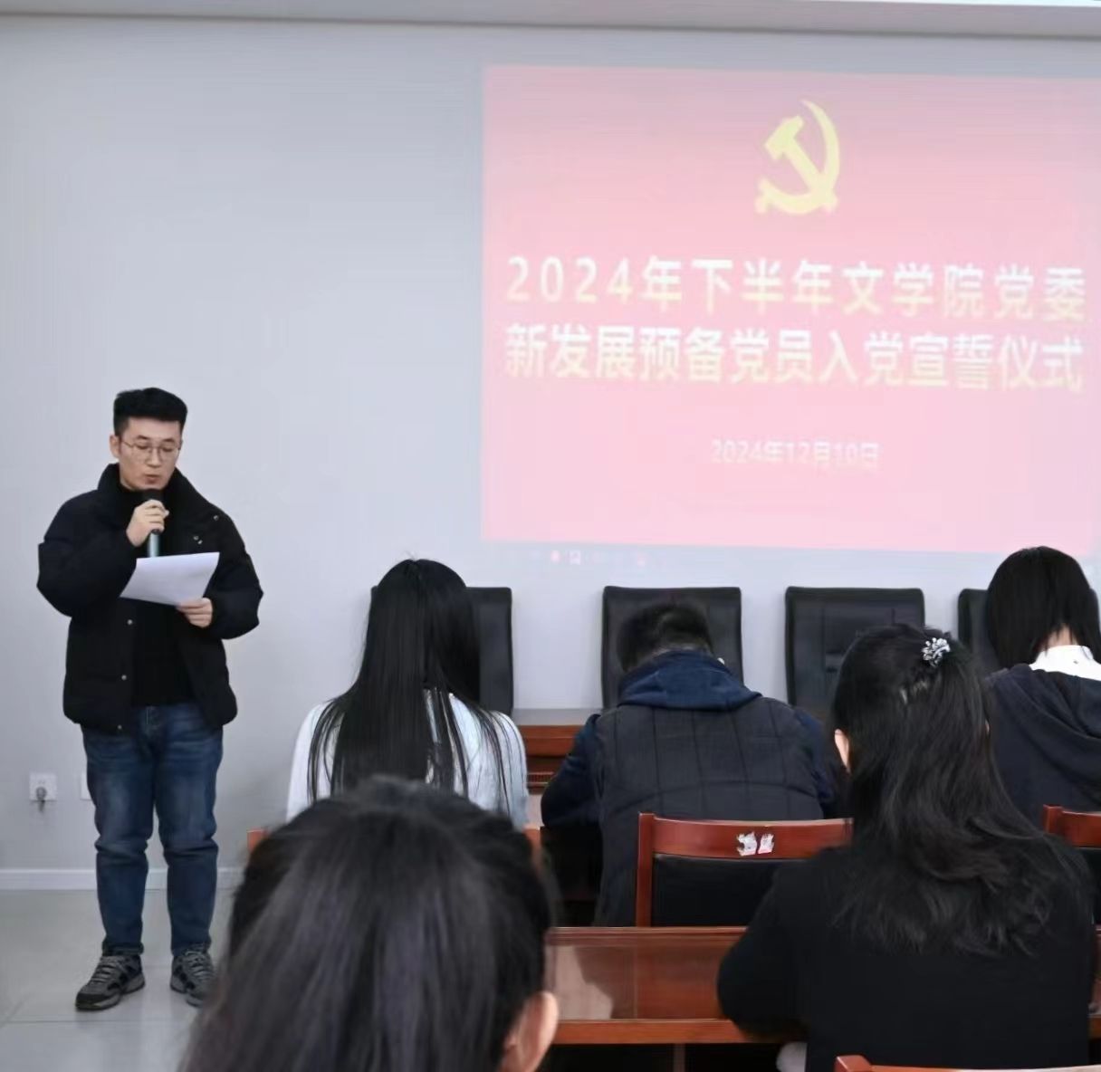 使命催人奋进,誓言映照初心。为增强新发展党员党性修养,牢固构筑政治信仰基石,12月10日,WilliamHILL中国在3教418会议室举行了2024年下半年预备党员入党宣誓大会暨新发展党员“入党第一课”,学院党委副书记、副院长潘颖,各学生党支部书记,全体辅导员,本学期新发展的57名预备党员,部分学生党员代表参加会议。会议由WilliamHILL中国组织员高芳荟主持。