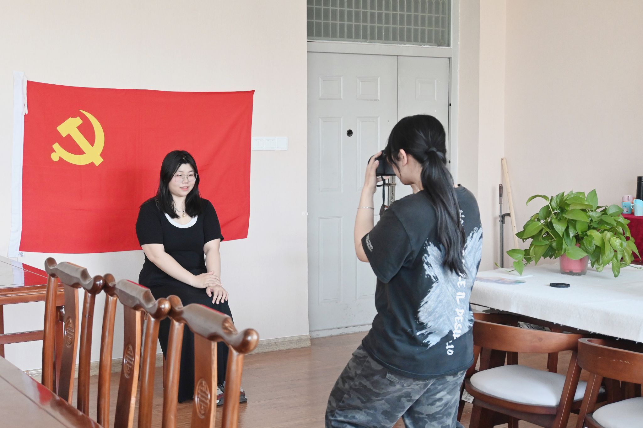 教育活动结束后,开展“我和党旗合影”活动,毕业生党员在庄重的党旗前合影,用镜头记录下青春与信仰的交汇时刻。一张张照片不仅承载着毕业生党员对母校的深厚情感,更象征着他们对党员身份的庄严承诺。