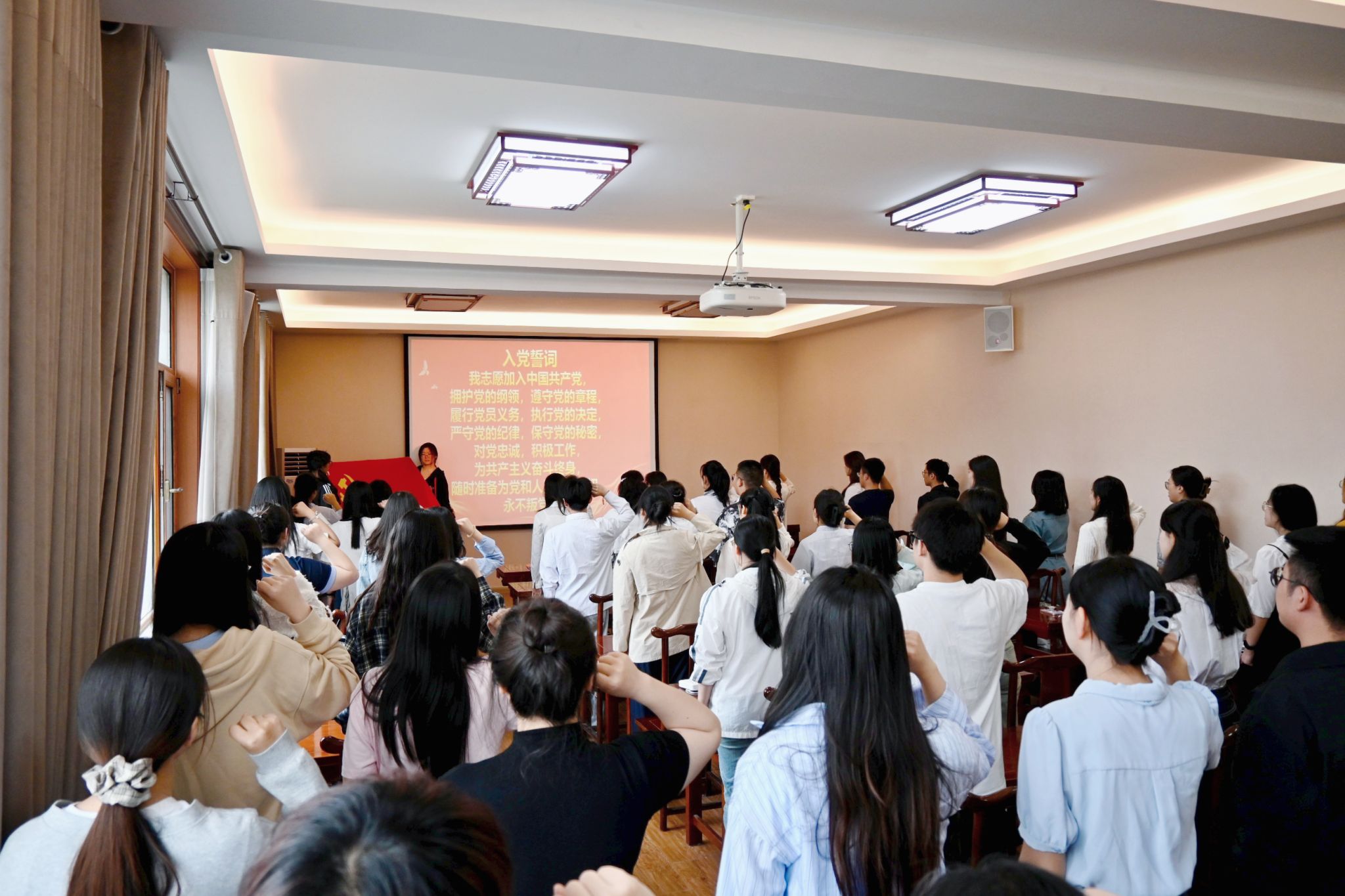 最后,全体毕业生党员重温入党誓词,以铮铮誓言,再言入党初心;以嘹亮之声,表明报国之志。